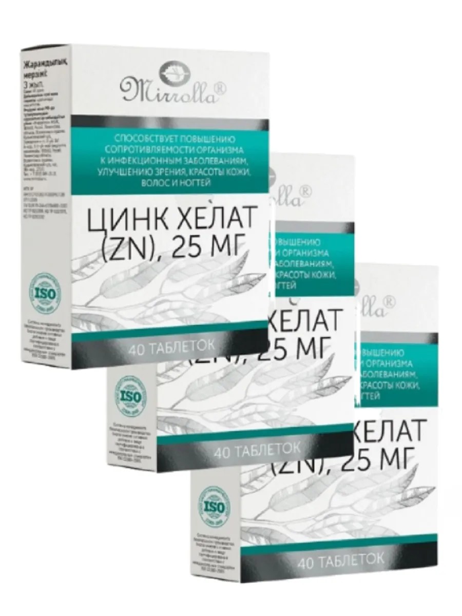 МИРРОЛЛА Цинк Хелат (Zn) 25 мг 40 таблеток/3 уп