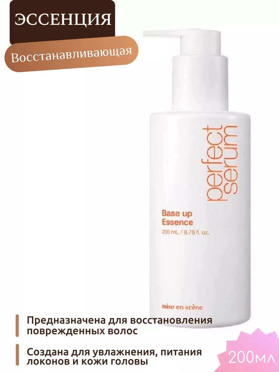 MISE EN SCENE Perfect Base-up Essence Restorative Hair Essence 200ml. Introducing the Korean restorative hair essence from Mise En Scene. This unique product will help you achieve perfect hair condition, restoring its health and beauty. Beautiful and healthy hair is what every woman dreams of. However, in our daily lives, our hair is exposed to various harmful influences, such as chemicals, heat treatments, and the environment. As a result, hair becomes dry, brittle, dull, and deprived of its natural beauty. Restorative hair essence from Mise En Scene is the perfect solution to your hair problems. This unique formula is developed using advanced technology and is based on carefully selected natural ingredients that provide intensive nourishment and restoration of your hair from the inside out. One of the key components of this essence is the extract of the Yukso plant, which has long been used in Korean cosmetology to strengthen and moisturize hair. This valuable ingredient is rich in vitamins and microelements that nourish and strengthen hair, leaving it silky, smooth, and shiny. This restorative essence is designed to meet the needs of all hair types. Ingredients:water, Dipropylene Glycol, Cetyl Ethylhexanoate, Dicaprylyl Carbonate, Cetyl Alcohol, Cyclopentasiloxane, Stearamidopropyl Dimethylamine, Cetearyl Alcohol, Camellia Japonica Seed Oil, Glycolipids, Cocos Nucifera (Coconut) Oil, Argania Spinosa Kernel Oil, Simmondsia Chinensis (Jojoba) Seed Oil, Olea Europaea (Olive) Fruit Oil, Prunus Armeniaca (Apricot) Kernel Oil, Sclerocarya Birrea Seed Oil, Cetearyl Alcohol, Dimethiconol, Lactic Acid, Polyquaternium-51, Disodium EDTA, Ethylhexylglycerin, Coco-Caprylate/Caprate, Fragrance