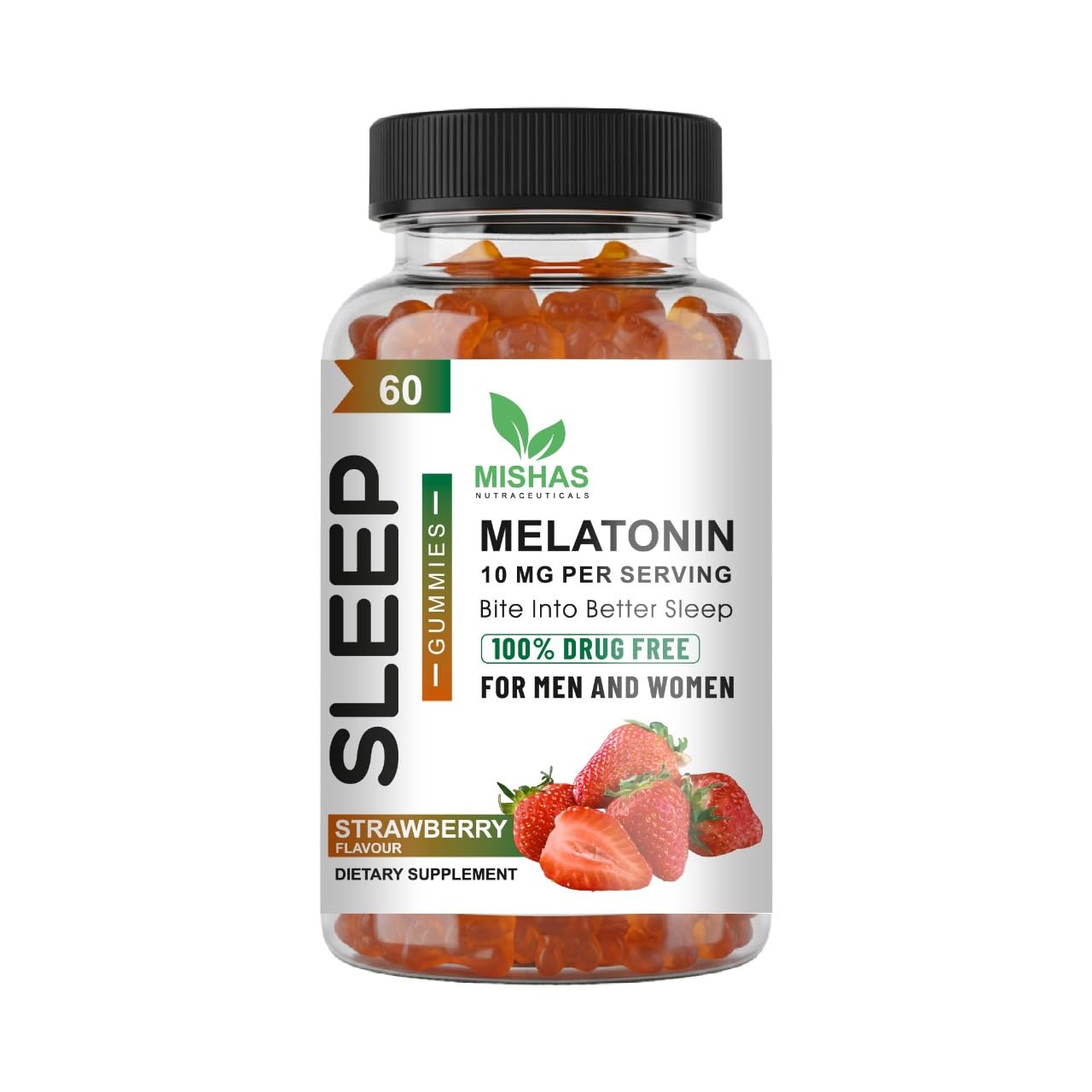 Mishas Nutraceuticals Melatonin Sleep Support Gummies for Adults 10 mg Melatonin Supplement 60 Strawberry Flavor Gummies Provides Up to 30 Days of Restful Sleep