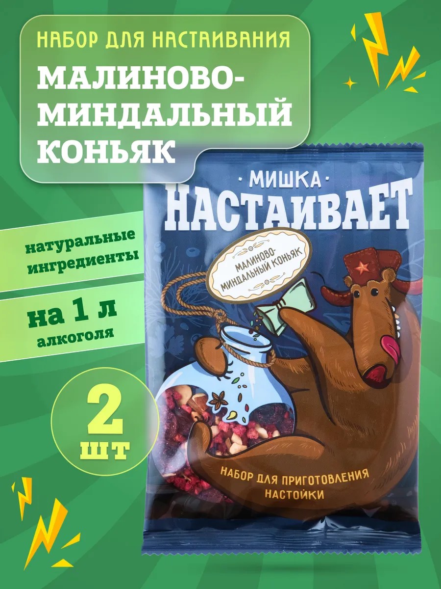 Мишка настаивает Набор "Малиново-миндальный коньяк" для настойки, 2 шт.