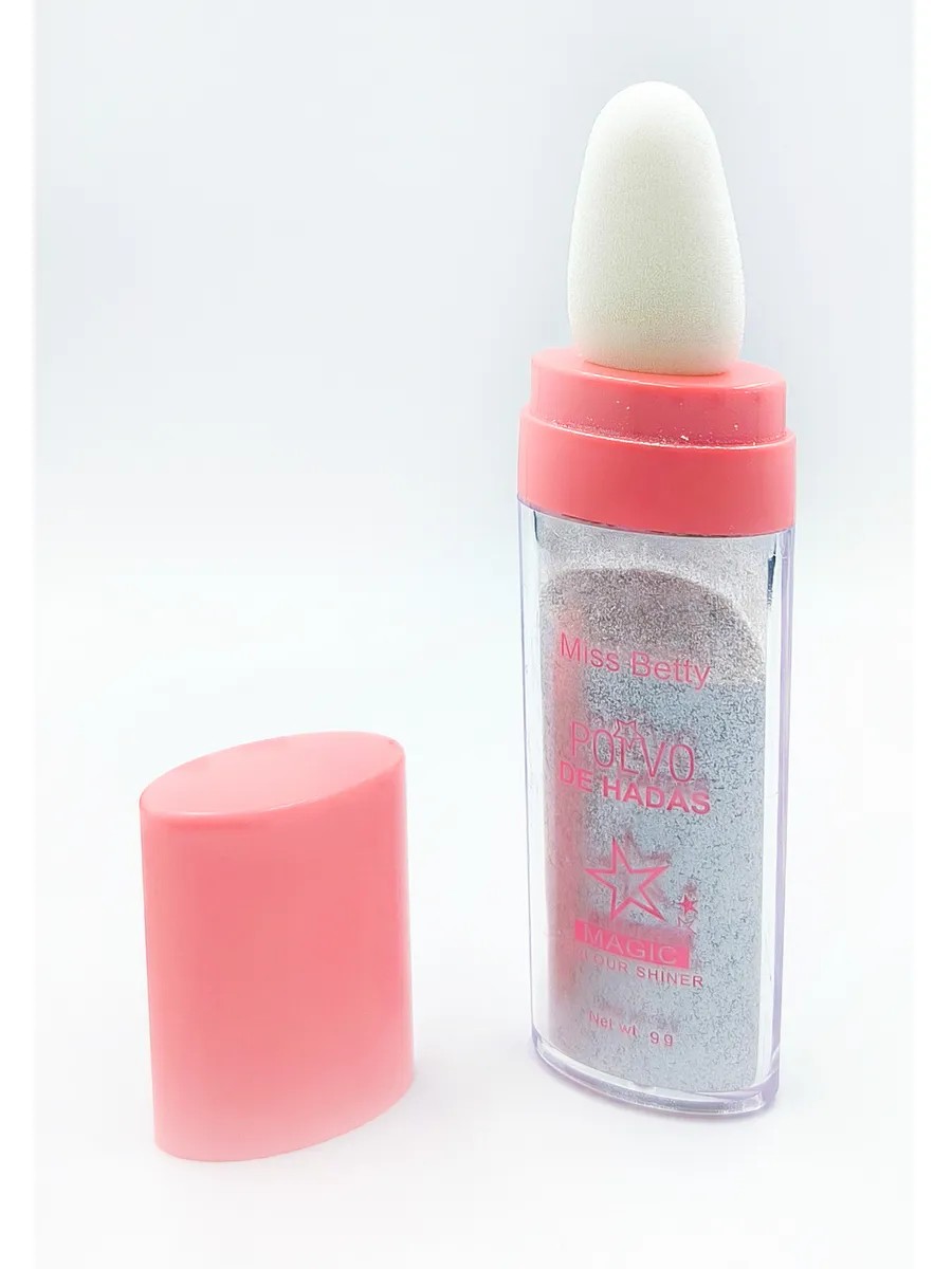 Miss Betty Polvo De Hadas Loose Highlighter with Applicator for Face and Body, 9g. This highlighter has an incredibly soft and silky texture that instantly enriches your makeup with a vibrant glow. It perfectly highlights key areas of your face—cheekbones, nose, and forehead—for a healthy glow. Easy application and excellent blendability allow for a flawless result that looks natural and fresh. With our highlighter, you can create a velvety shine and subtly define your facial contours, adding a gorgeous play of light to your look. Whether you're preparing for an important event or simply want to add a touch of radiance to your everyday makeup, this highlighter will become your indispensable assistant. Try it and discover a new level of radiance and well-groomed skin!