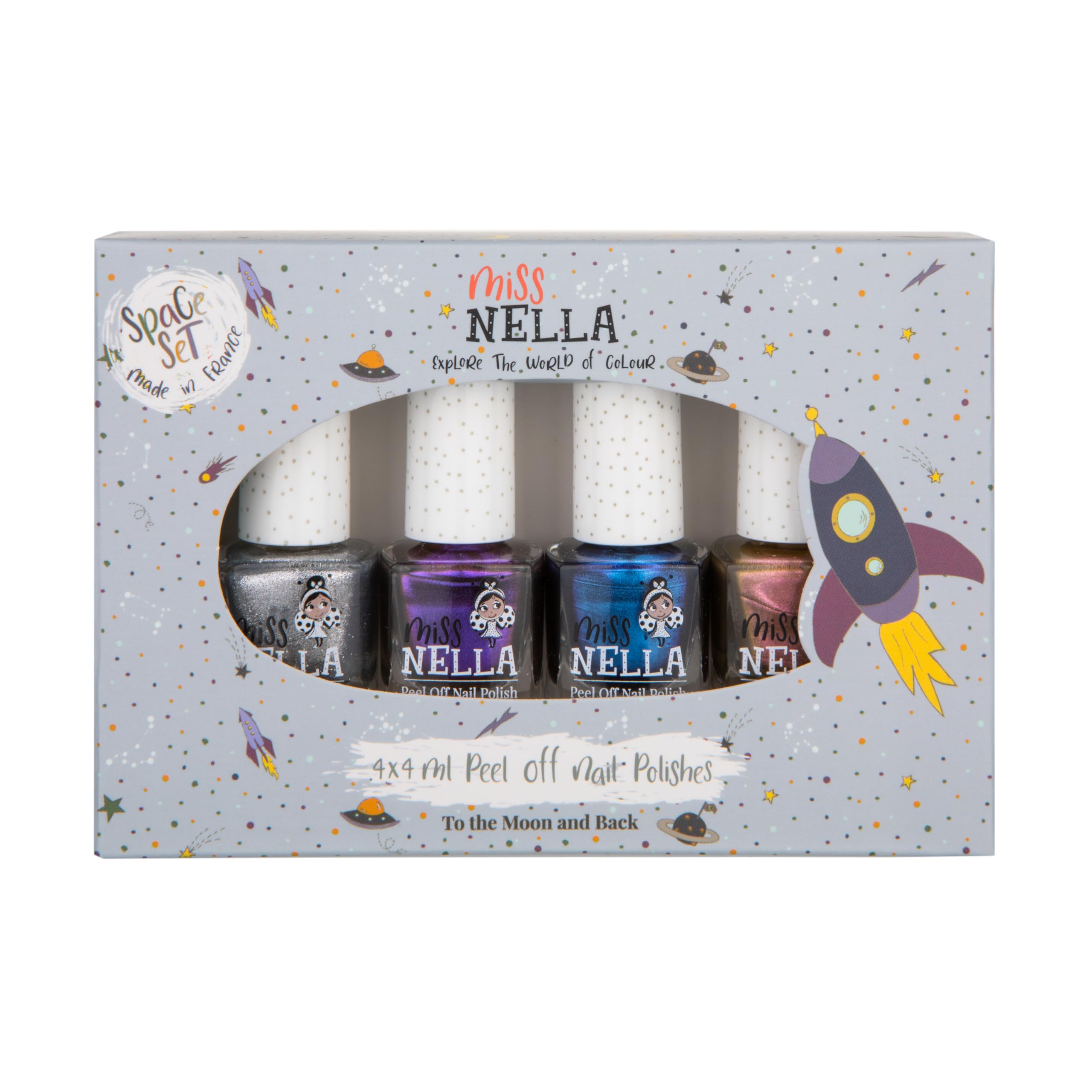 Leave your children with the Miss Nella Nailack 4 Set with trends.Our nail polish is water -based, deductible, odorless, safe and fun!Miss Nella Nailack, produced in France, can be used by her children without hesitation.It can be pulled off like a sticker and it is not washable, i.e. that their children can continue to play with water, swim and wash their hands without the nail polish detached.It can only be pulled off.Dermatologically tested.We recommend that the nail polish is only used under the supervision of an adult. Warnings Please note that the colors can appear differently on different screens.Please note that our nail polish can only be removed from nails and not from dresses.As with normal nail polish, it cannot be removed from textiles.Not suitable for consuming.Keep inaccessible to babies.the ideal gift: Miss Nella nail polish is perfect for all children up to young people.Regardless of whether it is a birthday present, Christmas, schooling or another occasion, offers Miss Nella, with the large selection of bright, glittering colors and the toxic -free formula, a suitable gift for everyone. Lassen Sie Ihre Kinder mit dem Miss Nella Nagellack 4er Set sicher mit Trends experimentieren. Unser Nagellack ist wasserbasiert, abziehbar, geruchsneutral, sicher und macht Spaß! Der in Frankreich hergestellte Miss Nella Nagellack kann von Ihren Kindern bedenkenlos benutzt werden. Er ist wie ein Aufkleber abziehbar und er ist nicht abwaschbar, d.h., daß Ihre Kinder weiterhin mit Wasser spielen, schwimmen und sich die Hände waschen können, ohne daß sich der Nagellack ablöst. Er kann nur abgezogen werden. Dermatologisch getestet. Wir empfehlen, daß der Nagellack nur unter Aufsicht eines Erwachsenen verwendet wird. WARNHINWEISE Bitte beachten Sie, daß die Farben auf verschiedenen Bildschirmen anders erscheinen können. Bitte beachten Sie, daß unser Nagellack sich nur von Nägeln abziehen lässt und nicht von Kleidern. Wie bei normalen Nagellack lässt er sich nicht aus Textilien entfernen. Nicht zum Verzehr geeignet. Für Babys unzugänglich aufbewahren.DAS IDEALE GESCHENK: Miss Nella Nagellack ist perfekt für alle Kinder bis hin zu Jugendlichen geeignet. Egal, ob es sich um ein Geburtstagsgeschenk, Weihnachten, Einschulung oder einen anderen Anlass handelt, Miss Nella bietet, mit der großen Auswahl an leuchtenden, glitzernden Farben und der giftstofffreien Formel, für jeden ein passendes Geschenk an.