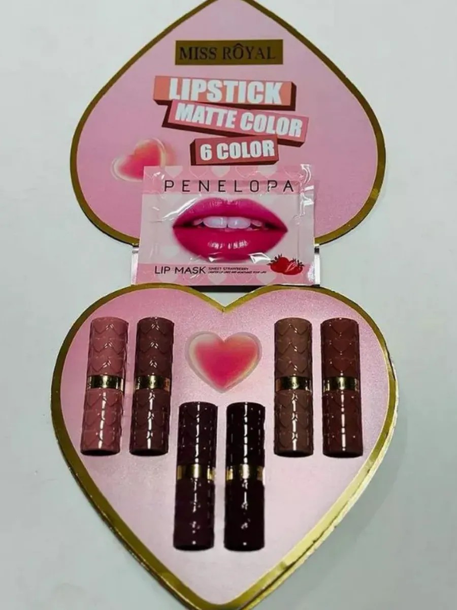 Подарочный набор Помады для губ матовые 6 шт, стойкие имеют легкую гелевую текстуру, которая легко наносится и позволяет губам оставаться мягкими и увлажненными. В набор входит 6 губных помад разных оттенков и патчи для губ. Густая кремовая текстура помады равномерно и плотно покрывает губы, дарит им интенсивный глубокий и чувственный цвет, подчеркнутый пудровым финишем. Сферические пудровые микрочастицы дарят ощущение бархатистой мягкости на губах и создают соблазнительный эффект мягкого фокуса. Имеет насыщенный цвет и зрительно увеличивает объем губ. Твердая консистенция помады позволяет точно наносить цвет, акцентируя внимание на губах. Благодаря этому, каждая женщина может создать идеальный макияж, подходящий для любого торжественного мероприятия или повседневного образа. Матовая помада для губ предлагает широкий выбор оттенков, гарантируя, что каждая женщина найдет идеальный тон для своей внешности и настроения. В коллекции доступны как классические нюдовые оттенки, так и яркие и смелые цвета, чтобы подчеркнуть индивидуальность и стиль. Одного слоя помады достаточно для создания насыщенного покрытия, которое останется на губах много часов. Матовая губная помада - идеальное сочетание качества компонентов и текстуры, обеспечивая комфорт при ношении и легкость нанесения. Благодаря специально разработанной формуле держится на губах весь день, не скатывается и не стирается даже при контакте с водой. Ровно ложится на губы, имеет бархатистую структуру. Теперь никакой излишней контрастности - даже самые яркие и темные тона выглядят мягче и деликатнее. Матовая формула помады привносит роскошь в ваш образ, подчеркивая красоту и женственность. Создавайте неповторимый стиль с помощью этой стойкой, матовой помады, и ощутите всю ее прелесть.