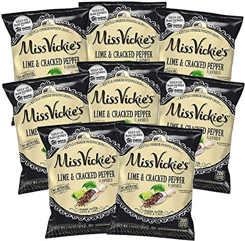 Miss Vickie's Lime & Cracked Pepper Kettle Cooked Potato Chips, 1.375 oz Bags (Pack of 8) 1.37 Ounce (Pack of 8)
