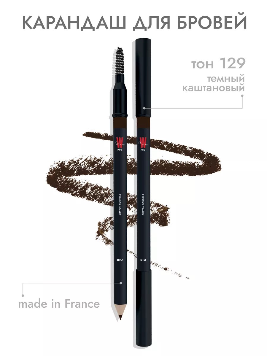 MISS W PRO Карандаш для бровей 129 Темный каштановый