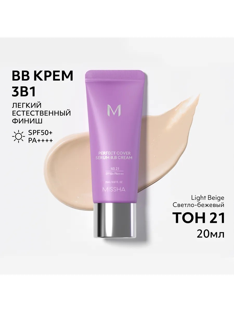 | Полное наименование товара | Тональный BB крем для лица тон 21 Светло-бежевый с антивозрастной сывороткой для сияния кожи М Perfect Cover Serum BB Cream SPF 50 PA 20 мл |