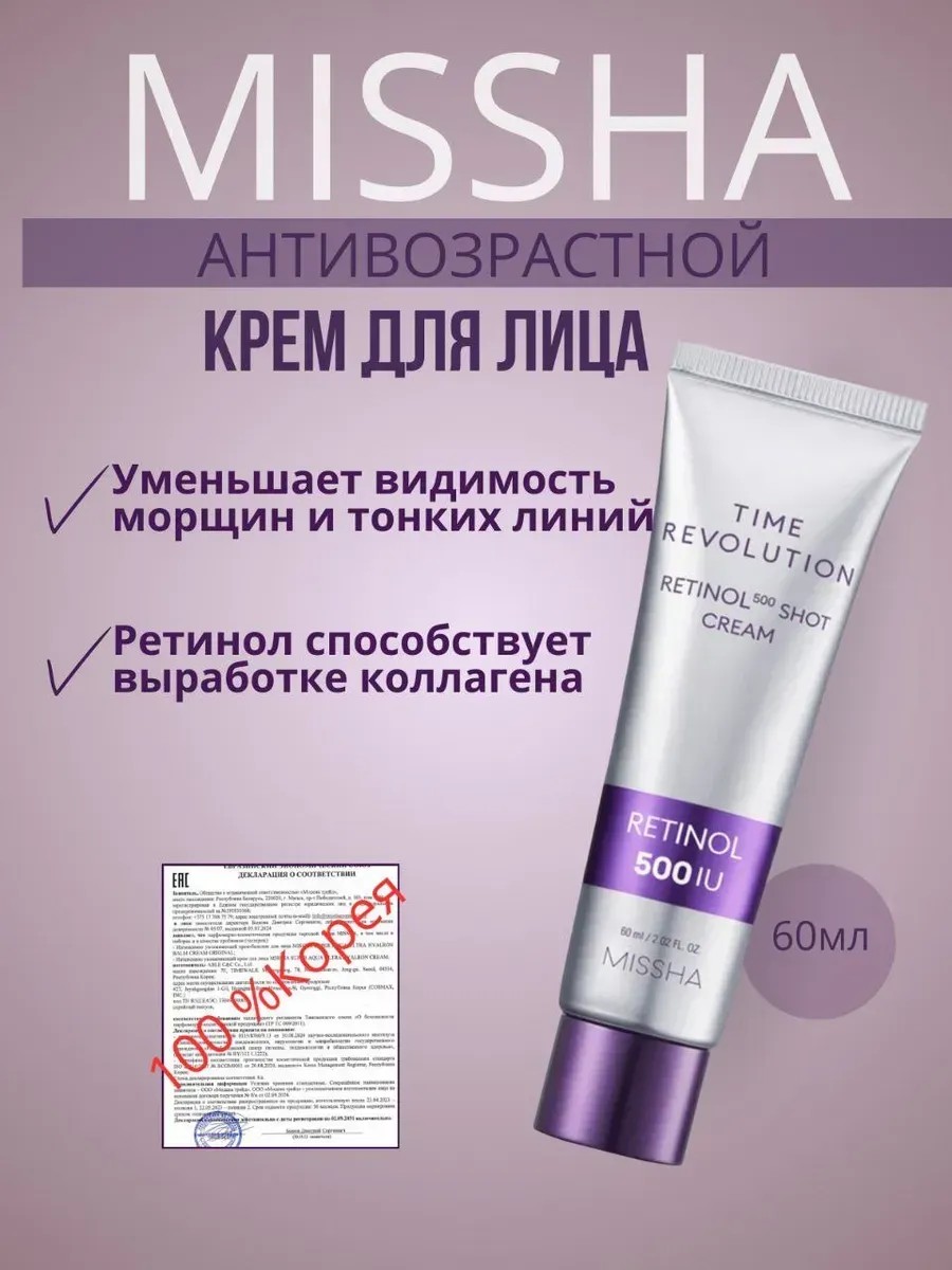 The main active ingredient in MISSHA cream is retinol, known for its powerful anti-aging effect.