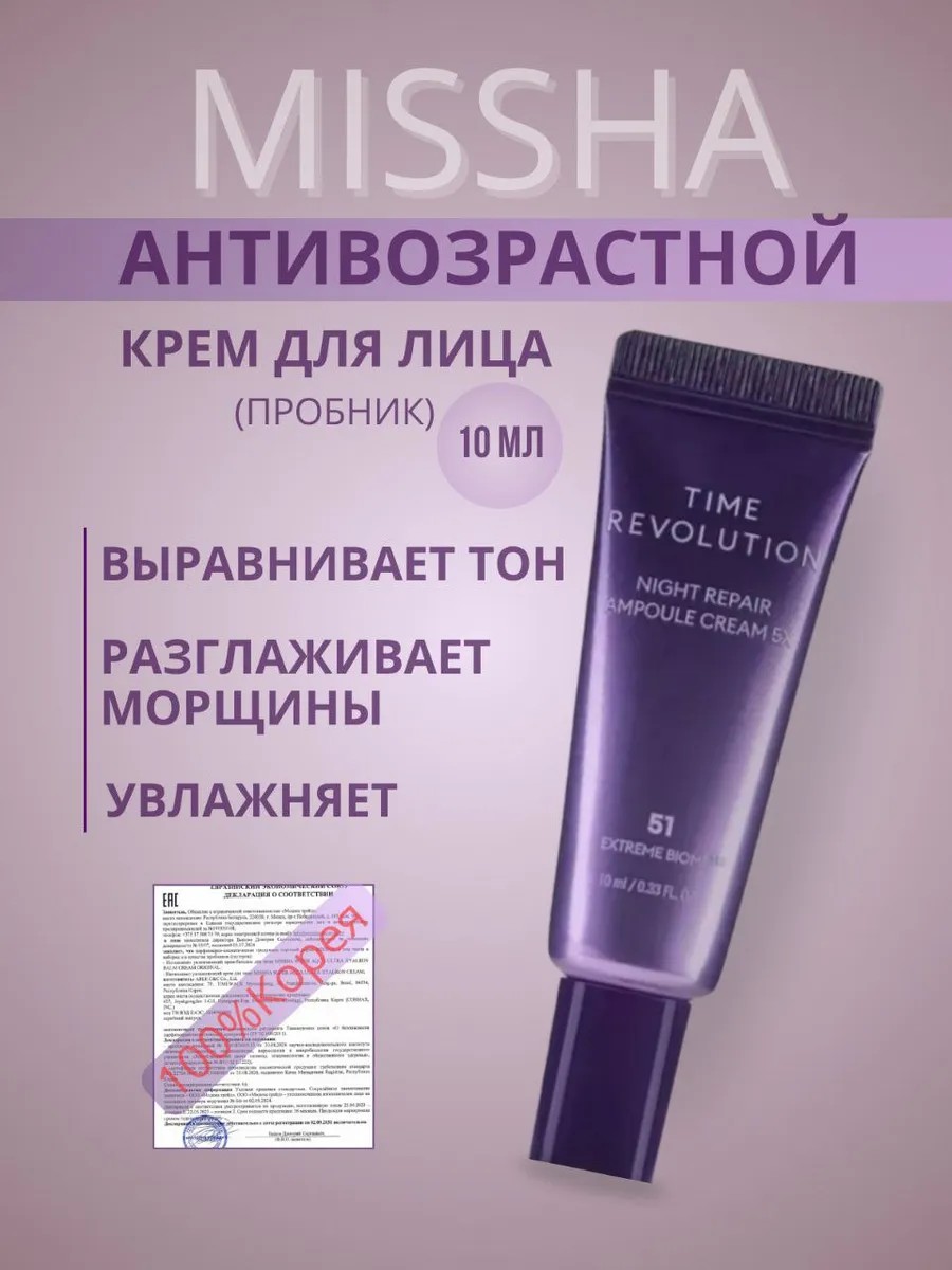 Ночной крем для лица (пробник) MISSHA Time Revolution Night Repair Ampoule Cream 5X в миниатюрном формате — идеальное решение для знакомства с корейским уходом!