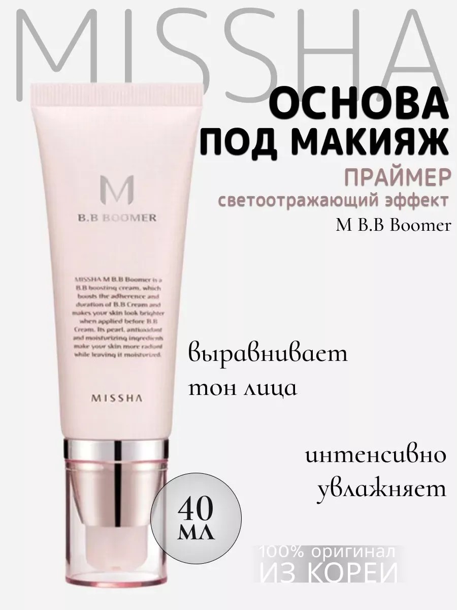 Основа под BB-крем MISSHA M B.B Boomer из Кореи - этот праймер для лица из корейского набора косметики "Миша" станет находкой для любого человека, заботящегося о своей коже. Он поможет подготовить кожу лица перед нанесением makeup, обеспечив увлажнение и защиту от вредных воздействий окружающей среды. База прекрасно ложится на кожу, не делая ее жирной или сухой, при этом матируя и создавая хорошую основу для контуринга. Этот уникальный продукт сочетает в себе функции основы под макияж, праймера и уходового средства для лица.Основа под ВВ-крем сочетает в себе функции праймера и активизирующего крема. Крем наносится за 3 минуты до нанесения BB крема. Экстракт моринги в составе оказывает противовоспалительное действие, при регулярном использовании сужает поры и регулирует выработку кожного жира. Кроме того, моринга восстанавливает поврежденную кожу, успокаивает чувствительную кожу. Аденозин регулирует окислительно-восстановительные процессы в клетках кожи, замедляя её старение. Арбутин блокирует формирование пигмента меланина и препятствует образованию чрезмерной пигментацией, делает кожу светлее, смягчает и выравнивает ее тон. Работает как корректор, после него вы наносите тональный крем и декоративную косметику экономичнее. Косметика женская нормализует работу сальных желез, увлажняет, придает ровный рельеф коже и скрывает поры. Сияющий финиш после использования этого проблемного праймера будет радовать глаз каким угодно девушкам. Кремовая текстура проникает глубоко в кожу, увлажняя ее, делая тон ровным и помогая создать идеальный макияж. Выравнивающая основа под макияж или затирка для пор идеально скрывает недостатки по тону и текстуре кожи. Наша база под макияж идеально подходит для любого типа кожи, включая сухую, жирную и проблемную кожу. Это идеальный подарок для девушки, подростка или женщины, которая заботится о своей красоте и хочет выглядеть безупречно.Незаменимый помощник для получения хорошего макияжа каждый день.