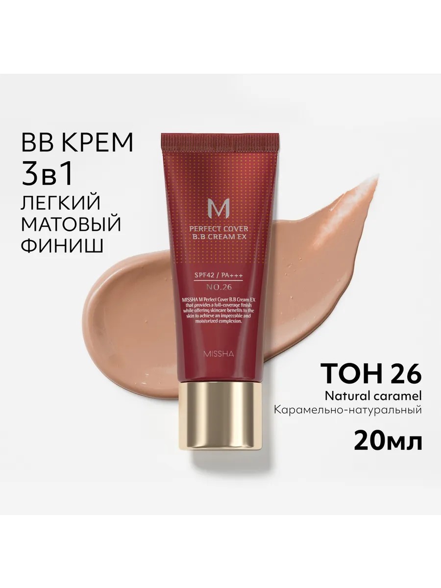 Effectively protects against the harmful effects of UVA and UVB sun rays, with a protection factor of SPF 42/PA +++. Shade 26. Volume 20 ml. MISSHA M Perfect Cover BB Cream is the perfect coverage for your skin: healthy color, freshness, and radiance all day long!