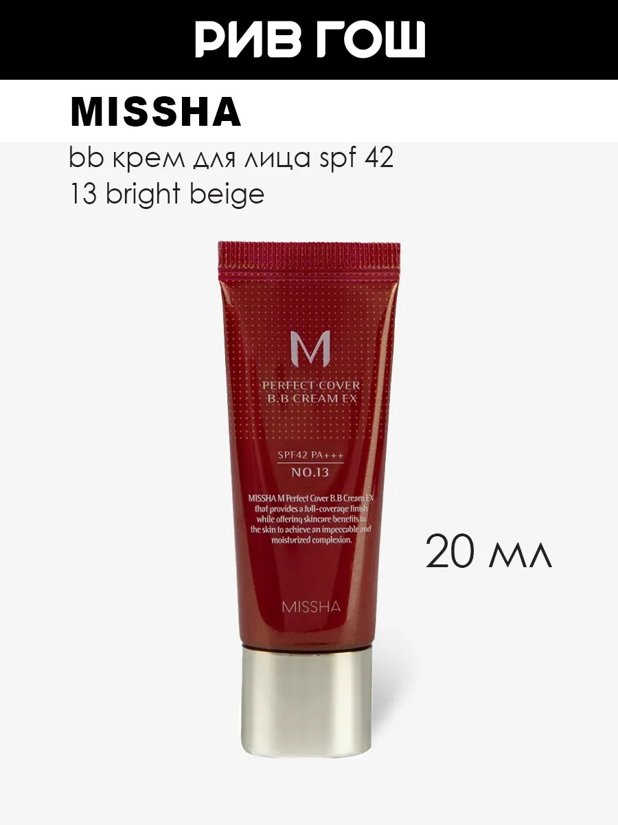 MISSHA M Perfect Cover - идеальное покрытие для вашей кожи: здоровый цвет, свежесть и сияние на весь день! BB-крем это тональный корейский крем для лица, который сочетает в себе функции увлажняющего и защищающего средства. Этот тональный крем для лица BB-крем обладает высокой эффективностью благодаря наличию множества активных ингредиентов, которые помогают улучшить текстуру кожи, сгладить неравномерность пигментации и скрыть видимые дефекты. BB-крем корея популярный корейский продукт, который набирает популярность во всем мире благодаря своим многофункциональным свойствам и легкой текстуре. Этот тональный увлажняющий крем для лица BB-крем помогает увлажнить и защитить кожу от вредных факторов окружающей среды, таких как загрязнения и ультрафиолетовое излучение. M Perfect Cover BB Cream Тональный крем EX SPF 42/PA+++, 20 мл, 13 Bright Beige. У нас Вы всегда сможете подобрать женскую и мужскую парфюмерию, декоративную косметику, а так же уходовые средства для волос, тела и лица. РИВ ГОШ вдохновляет дарить подарки каждый день.