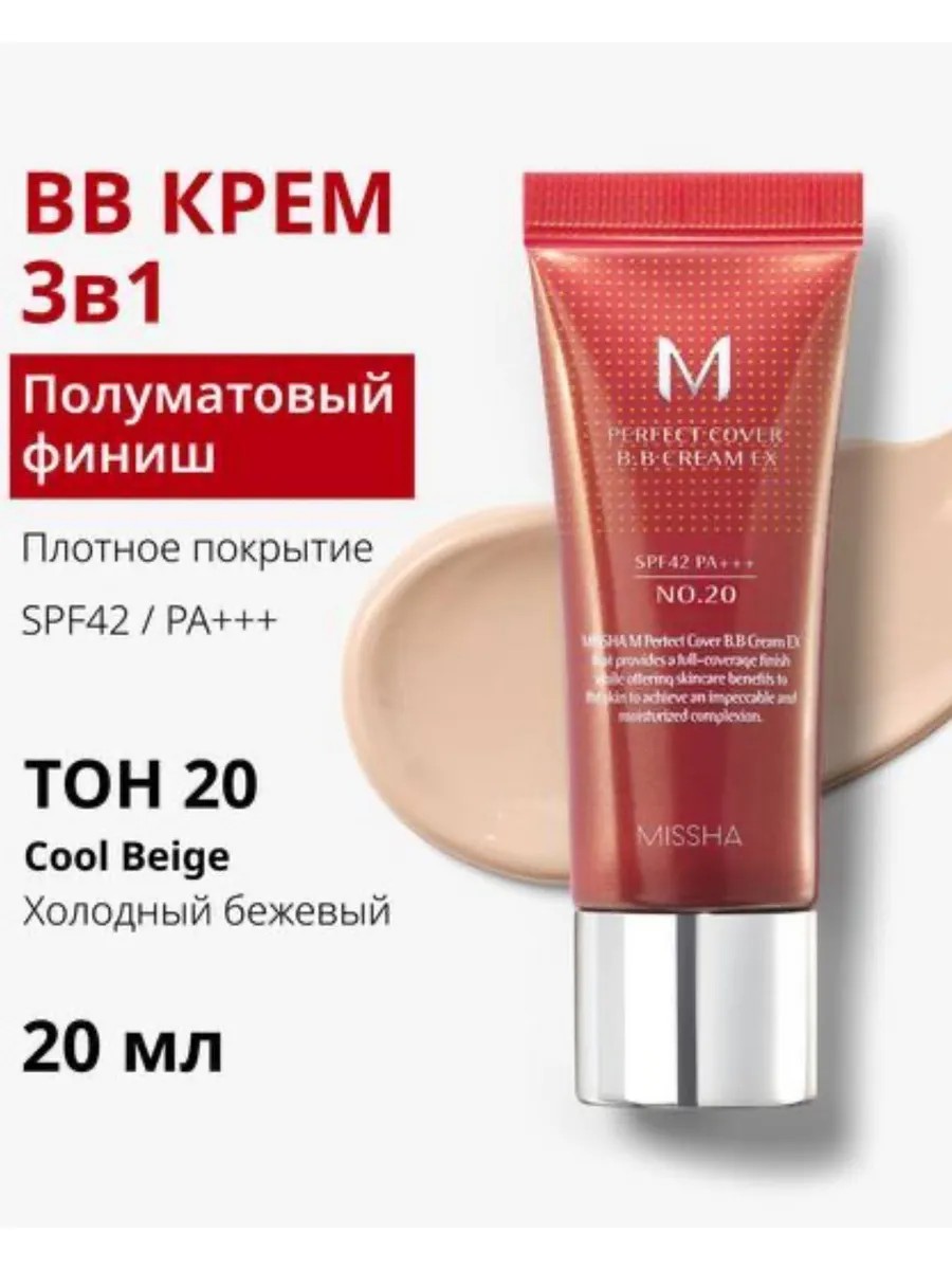 BB-крем MISSHA M Perfect Cover создаёт невесомое матовое покрытие без «эффекта маски». Подстраивается под Ваш естественный тон кожи, скрывая несовершенства и заметно улучшая цвет лица. Обеспечивает стойкое покрытие без жирного блеска до 30 часов. Не меняет оттенок в течение дня, не сереет, не темнеет, не скатывается. Благодаря мягкой кремовой текстуре BB крем MISSHA М Perfect Cover легко и быстро наносится, равномерно растушёвывается. Идеально перекрывает тёмные круги под глазами, маскирует покраснения и заметно осветляет пигментные пятна.
