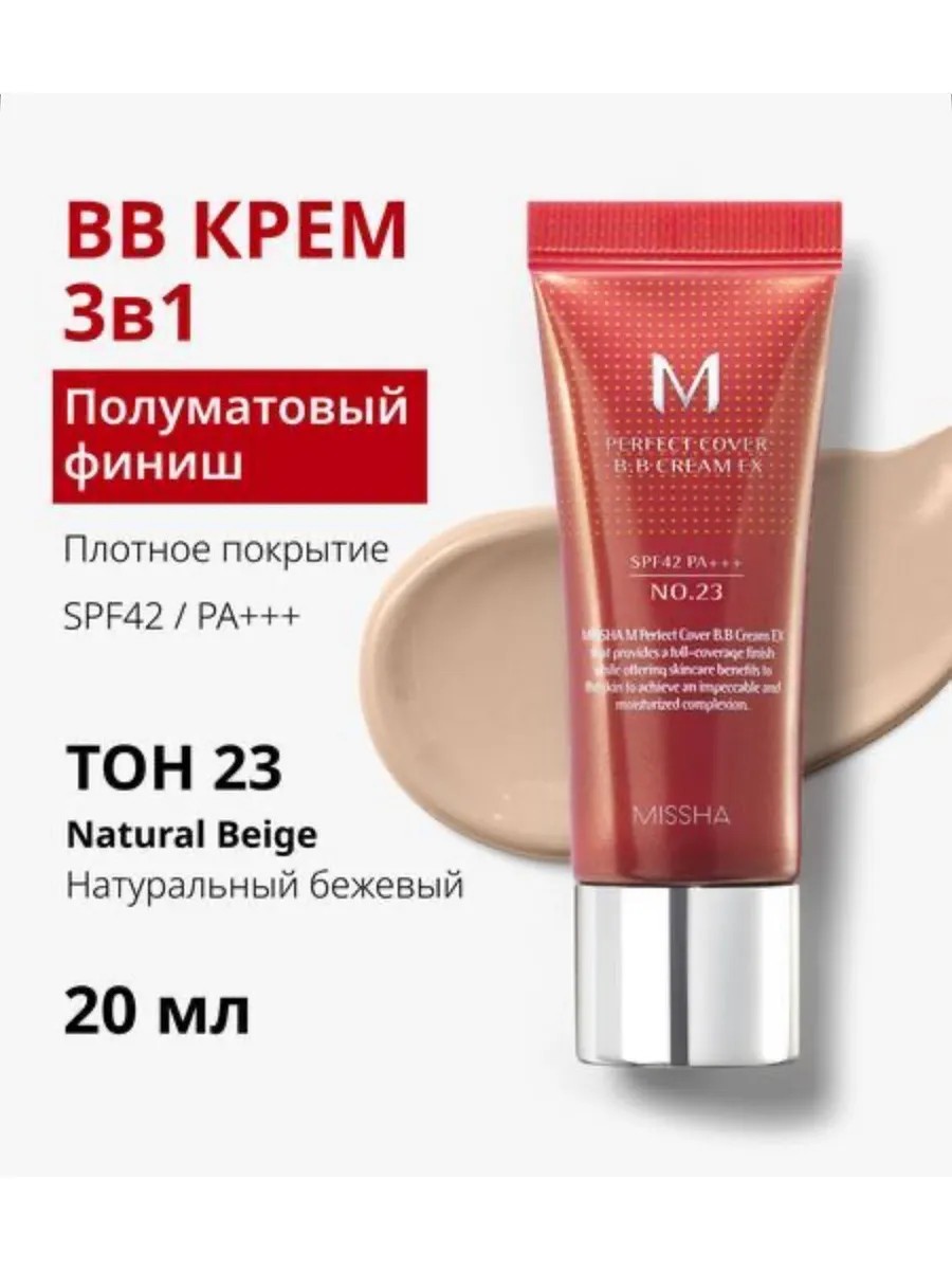 Тональный BB-крем MISSHA M подходит для всех типов кожи, в том числе для чувствительной области вокруг глаз. Эффективно защищает от вредного воздействия солнечных лучей спектра UVA и UVB, фактор защиты SPF 42/PA +++. Тон 23. Объем 20 мл. Тональный BB-крем MISSHA M Perfect Cover – идеальное покрытие для Вашей кожи: здоровый цвет, свежесть и сияние на весь день!