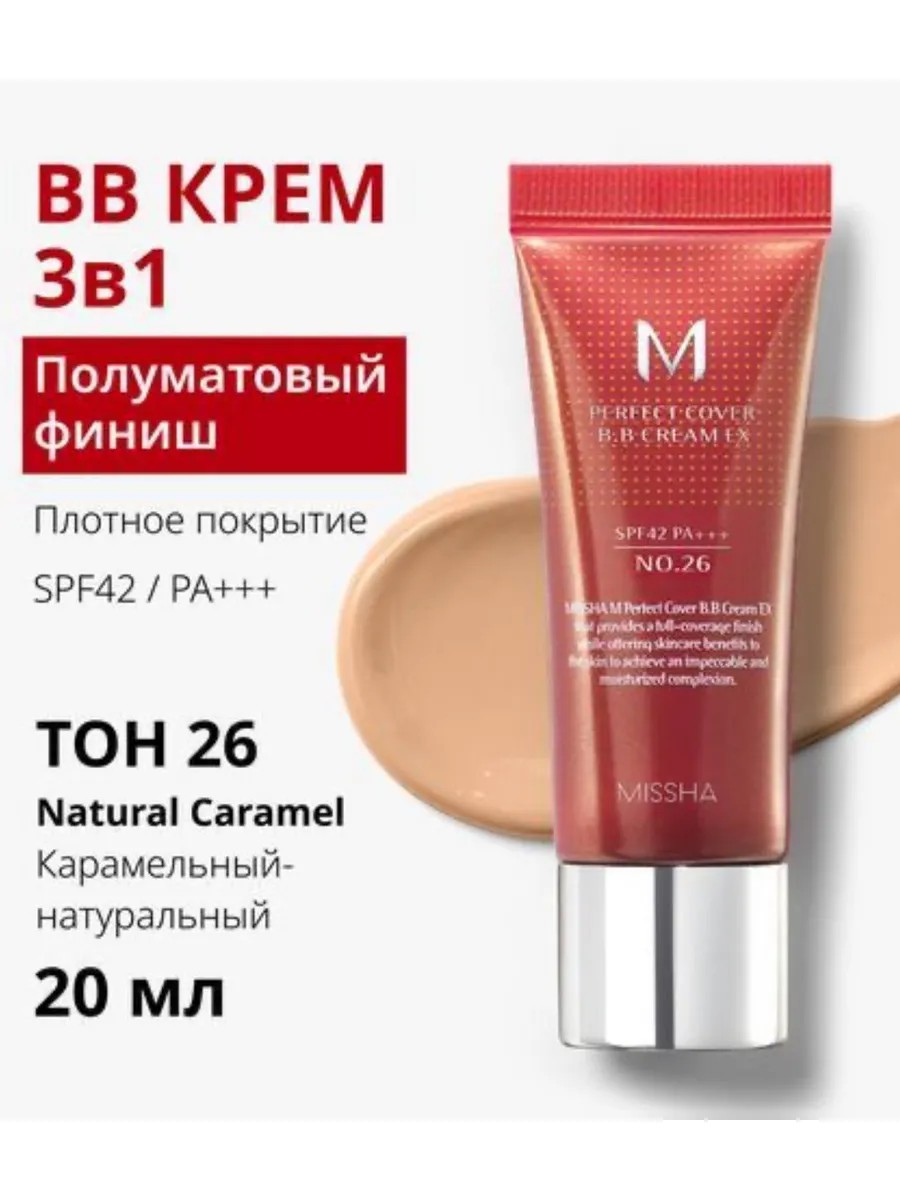 BB-крем MISSHA M Perfect Cover создаёт невесомое матовое покрытие без «эффекта маски». Подстраивается под Ваш естественный тон кожи, скрывая несовершенства и заметно улучшая цвет лица. Обеспечивает стойкое покрытие без жирного блеска до 30 часов. Не меняет оттенок в течение дня, не сереет, не темнеет, не скатывается. Благодаря мягкой кремовой текстуре BB крем MISSHA М Perfect Cover легко и быстро наносится, равномерно растушёвывается. Идеально перекрывает тёмные круги под глазами, маскирует покраснения и заметно осветляет пигментные пятна.