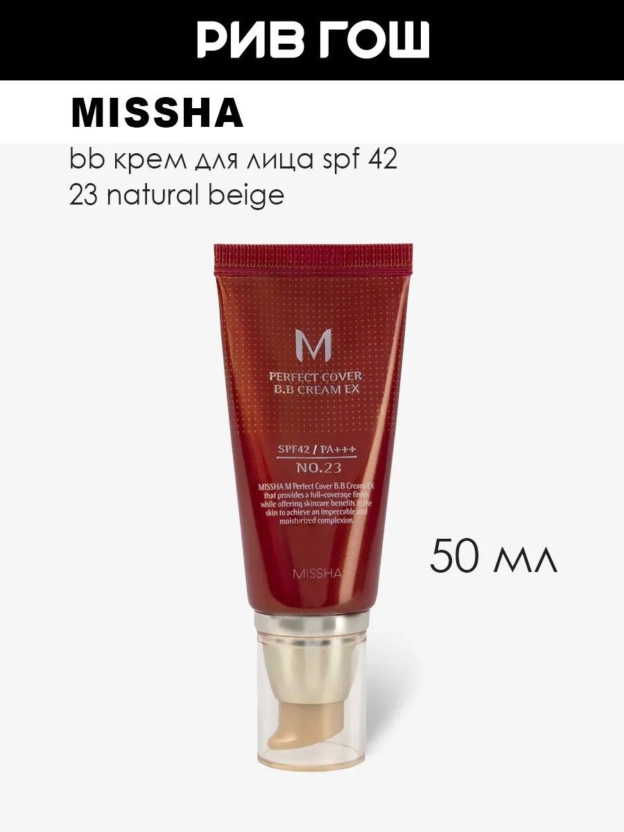 MISSHA M Perfect Cover - идеальное покрытие для вашей кожи: здоровый цвет, свежесть и сияние на весь день! BB-крем это тональный корейский крем для лица, который сочетает в себе функции увлажняющего и защищающего средства. Этот тональный крем для лица BB-крем обладает высокой эффективностью благодаря наличию множества активных ингредиентов, которые помогают улучшить текстуру кожи, сгладить неравномерность пигментации и скрыть видимые дефекты. BB-крем корея популярный корейский продукт, который набирает популярность во всем мире благодаря своим многофункциональным свойствам и легкой текстуре. Этот тональный увлажняющий крем для лица BB-крем помогает увлажнить и защитить кожу от вредных факторов окружающей среды, таких как загрязнения и ультрафиолетовое излучение. M Perfect Cover BB Cream Тональный крем EX SPF 42/PA+++, 50 мл, 23 Natural Beige. У нас Вы всегда сможете подобрать женскую и мужскую парфюмерию, декоративную косметику, а так же уходовые средства для волос, тела и лица. РИВ ГОШ вдохновляет дарить подарки каждый день.