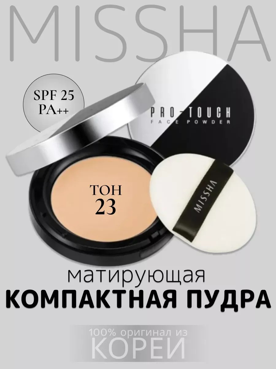 Пудра для лица компактная Pro-Touch Powder Pact SPF25/PA++, 23 тон, выравнивает текстуру кожи и маскирует расширенные поры, выравнивает неровную поверхность кожи, не ощущается маской на лице. Компактная пудра станет идеальным завершающим штрихом как повседневного, так и вечернего макияжа. Пудра имеет натуральные оттенки бежевого. Средство маскирует возрастные изменения, морщины и пиментые пятна. Кожа приобретает ровный и полностью натуральный тон. Благодаря специально разработанному легкому порошку сохраняет естественность и мягкость кожи. Особенностью компактной пудры считается сильная фиксация, позволяющая не беспокоиться о макияже на протяжении всего дня. При этом кожа «дышит», поскольку пудра не забивает поры. Преимущества пудры: В состав пудры входят натуральные минералы, которые заботятся о Вашей коже; Имеет натуральные оттенки бежевого, схожие со цветом человеческой кожи и не создающие эффект маски; Отличная стойкость пудры гарантирует, что вы не будете беспокоится о макияже в течение всего дня. В состав кушон входят натуральные экстракты цветов. Они оказывают мягкий ухаживающий эффект, не вызывая раздражения чувствительной кожи, смягчая и питая ее. Имеет в комплекте спонж. Благодаря своему составу и мелкому помолу, компактная пудра от Миша подходит ко всем типам кожи и не имеет возрастных ограничений. Это уникальное средство из Кореи подходит для контуринга лица представляет собой минеральное средство для макияжа, которое обеспечивает прозрачную и стойкую основу для декоративной косметики. SPF25 защитит кожу от негативного воздействия солнечных лучей, а гиалуроновая кислота увлажнит и позаботится о ее здоровье. Профессиональная пудра из Кореи создает эффективное солнцезащитное покрытие, блокирует выработку меланина и появление пигментных пятен, блокирует лучи типа UVA и UVB. Поглощает излишки кожного себума, контролирует работу сальных желез, способствует сохранению мягкости и эластичности кожи, улучшает текстуру кожи.