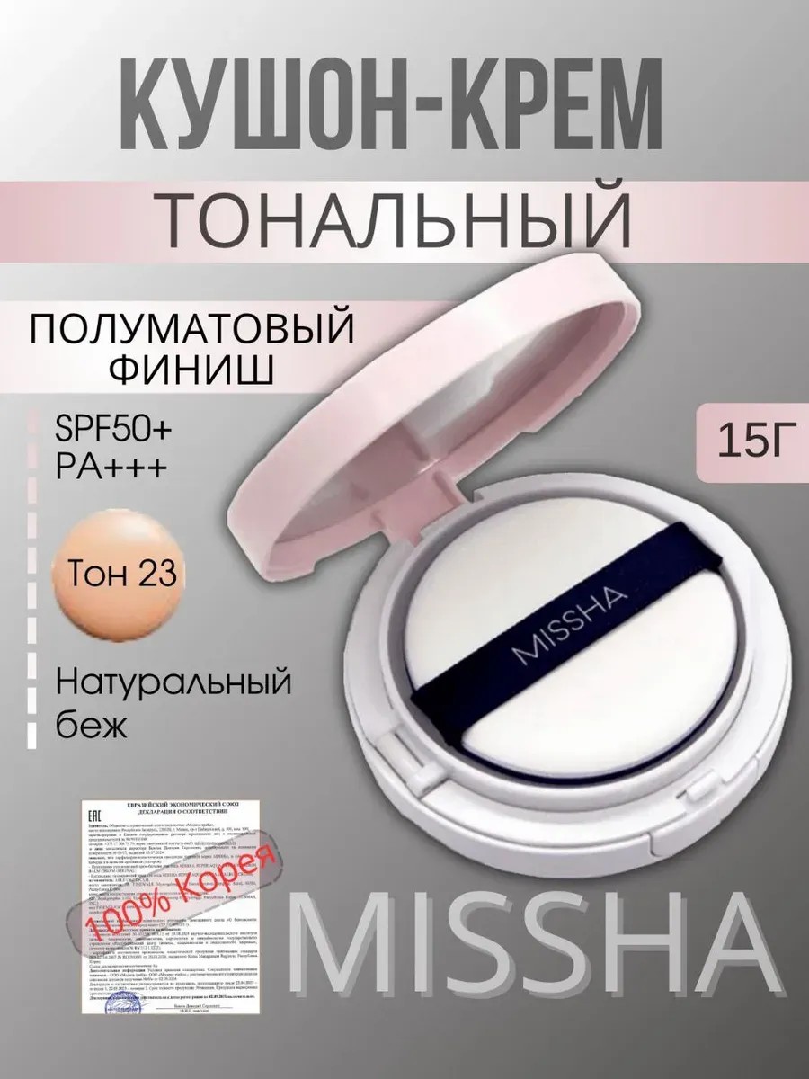 | Полное наименование товара | МІSSНА Кушон для лица с матовым финишем Маgіс Сushіоn Соvеr Lаstіng SPF50+/PA+++ (No.23) |