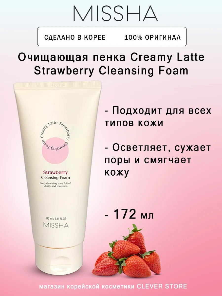 Попробуйте нашу нежную и эффективную пенку для умывания Missha Creamy Latte Strawberry сегодня и ваша кожа останется свежей, здоровой и излучающей уверенность. Missha - это корейская косметика, которая поможет вам достичь идеального вида вашей кожи!