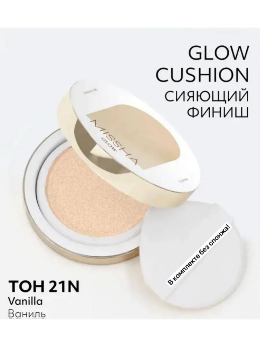 Glow Cushion Light (No. 21N Vanilla) 13g (1 pc). The MISSHA Glow Cushion Light cushion base with SPF 37 PA+++ performs several functions: it prevents the formation of wrinkles and corrects existing ones, promotes gentle skin brightening, and blocks UV radiation, preventing unwanted pigmentation and photoaging. It effectively corrects imperfections without a mask-like effect or stickiness. Long-lasting makeup lasts all day, and the cushion won't clog pores or accentuate wrinkles. The high concentration of natural collagen provides active hydration and care to the deeper layers of the skin.