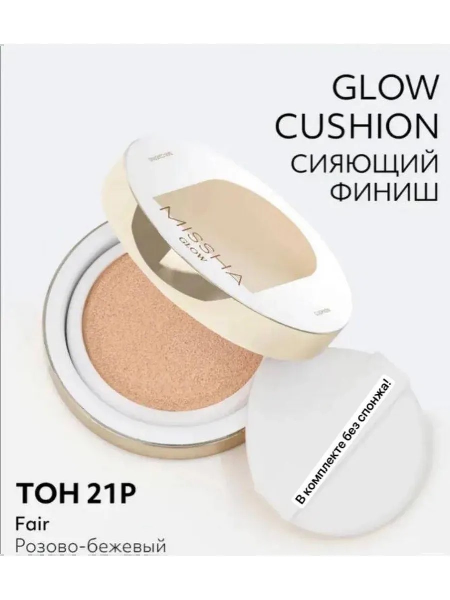 Glow Cushion Light (No. 21P Fair) 13g (1 pc). The MISSHA Glow Cushion Light cushion base with SPF37 PA+++ performs several functions: it prevents the formation of wrinkles and corrects existing ones, promotes gentle skin brightening, and blocks UV radiation, preventing unwanted pigmentation and photoaging. It effectively corrects imperfections without a mask-like effect or stickiness. Long-lasting makeup lasts all day, and the cushion won't clog pores or accentuate wrinkles. The high concentration of natural collagen provides active hydration and care to the deeper layers of the skin.