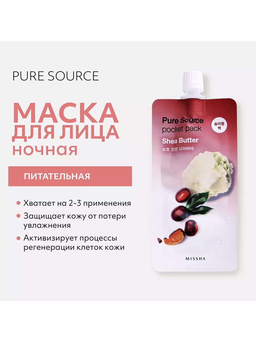 Missha Маска кремовая ночная с маслом ши Pure Source Pocket pack 10мл 1шт.