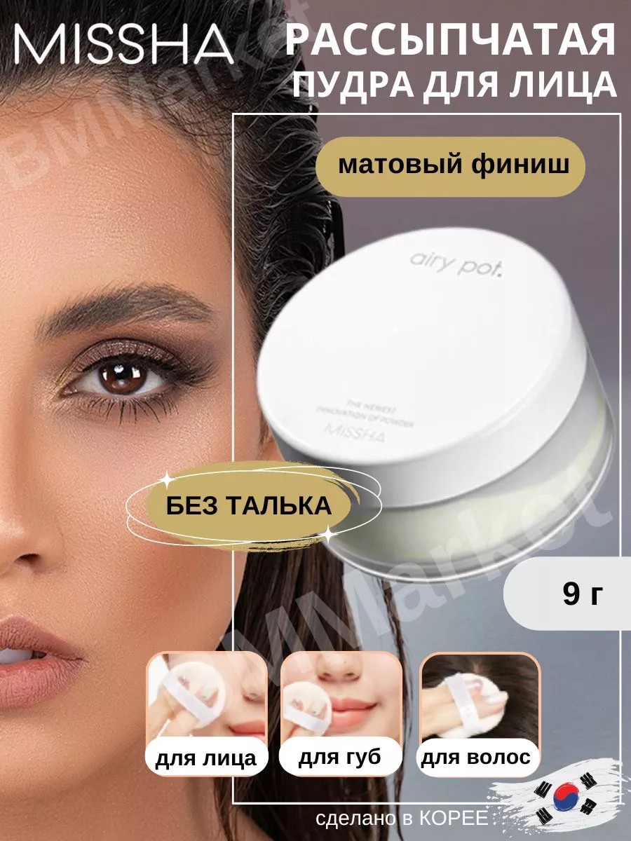Матирующая рассыпчатая пудра для лица MISSHA Airy Pot Powder Mint имеет зеленый оттенок, идеально балансирует кожу, уменьшая покраснения и раздражения, придавая лицу свежий и отдохнувший вид. Эффективно устраняет жирный блеск, не забивает поры и делает их менее заметными, фиксирует макияж, значительно продлевая его стойкость, выравнивает тон, скрывает различные несовершенства и делает кожу матовой и шелковистой. Благодаря инновационным ингредиентам она обеспечивает идеальное сочетание матового покрытия и естественного сияния. Корейская пудра для лица с зеркалом и с пуховкой невероятно легкая в нанесении, равномерно распределяется по коже, способна адаптироваться к любому оттенку, делая кожу гладкой как шелк, обеспечивает безупречный результат в течение всего дня. Эта рассыпчатая пудра фиксирующая не просто косметическое средство, это забота о вашей коже и возможность подчеркнуть вашу естественную красоту. Откройте для себя магию зеленого оттенка в этой пудре и почувствуйте себя в гармонии с собой и миром вокруг. Зеленая пудра для лица миша предназначена для коррекции цветового баланса кожи, нейтрализует красный оттенок и создает эффект естественного тонирования, помогает скрыть видимость сосудов и уменьшить покраснения, идеальна для кожи с куперозом, воспалениями и высыпаниями. Пудру можно использовать для губ и для волос. Пудра для лица корея матирующая наносится кистью или пуховкой, подходит для всех типов кожи. Активные компоненты: Nylon-12 обеспечивает создание более легкой текстуры и матового финиша. Предотвращает жирность и излишний блеск на коже, обеспечивая более длительное устойчивое покрытие. Силика используется как абсорбент, который помогает впитывать излишки себума, делая кожу более матовой, помогает создать барьерную защиту на коже, улучшает текстуру и качество кожи. 100% Оригинальная корейская женская декоративная косметика. Способ применения: Используйте как завершающий этап макияжа или точечно для маскировки несовершенств.