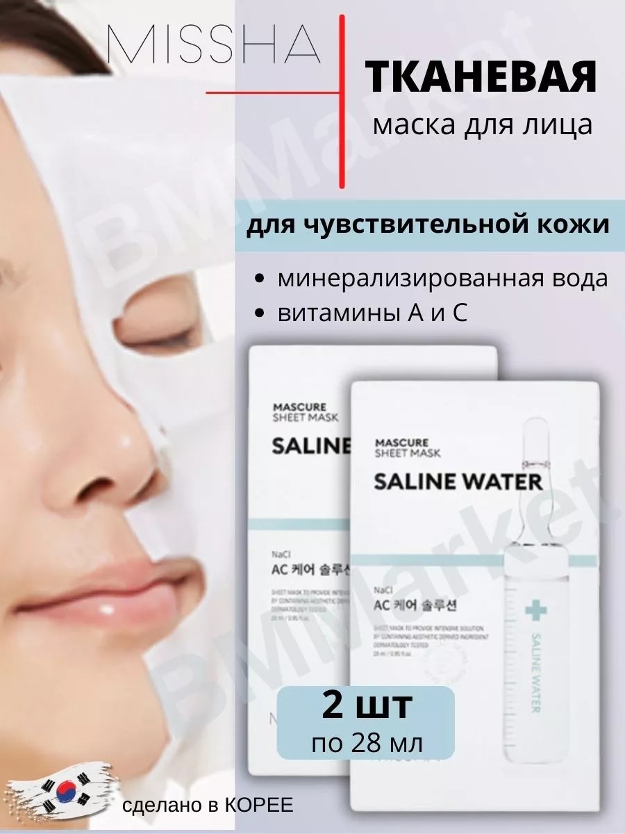 | Комплектация | Маска для чувствительной кожи лица MISSHA Mascure AC Care Solution Sheet Mask (Saline Water) 2х28 мл |