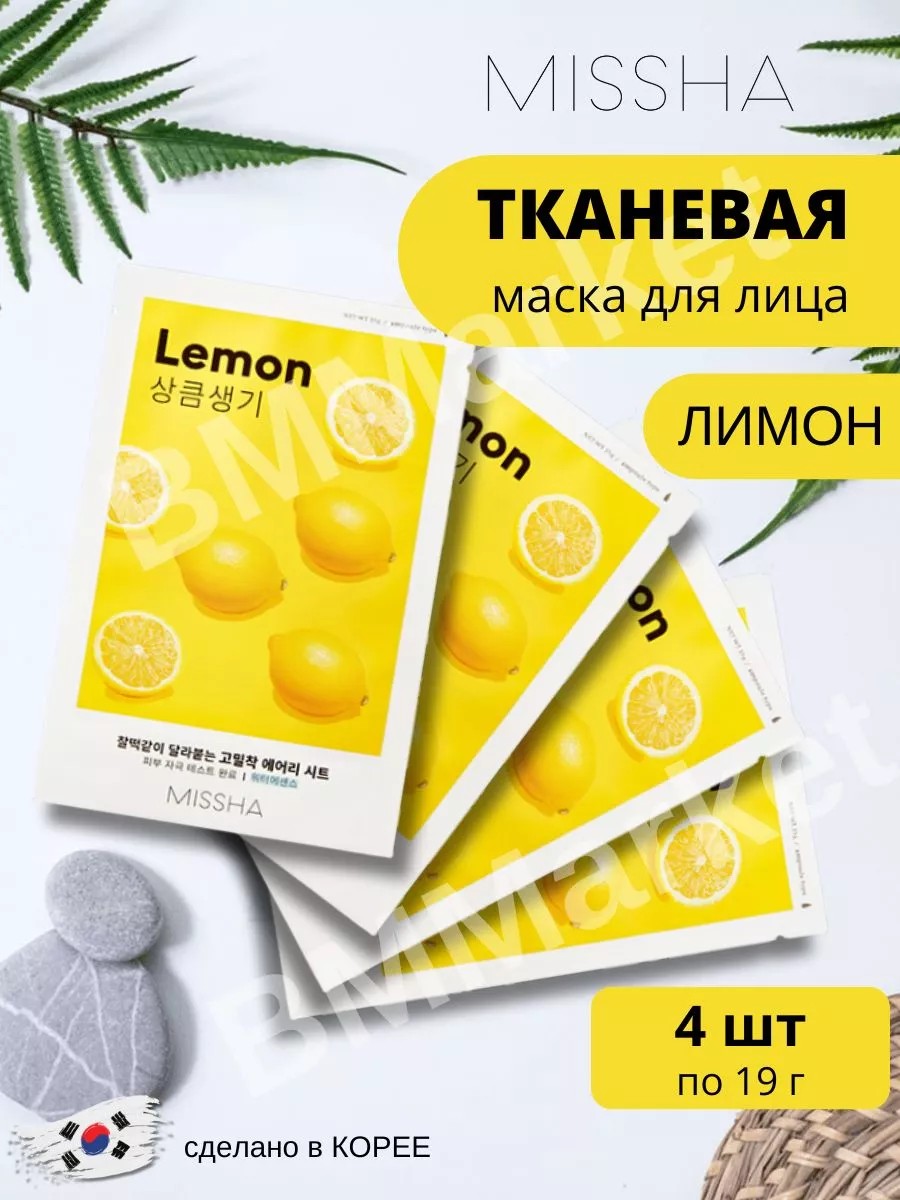 MISSHA Маска для лица тканевая освежающая с лимоном, 4х19г