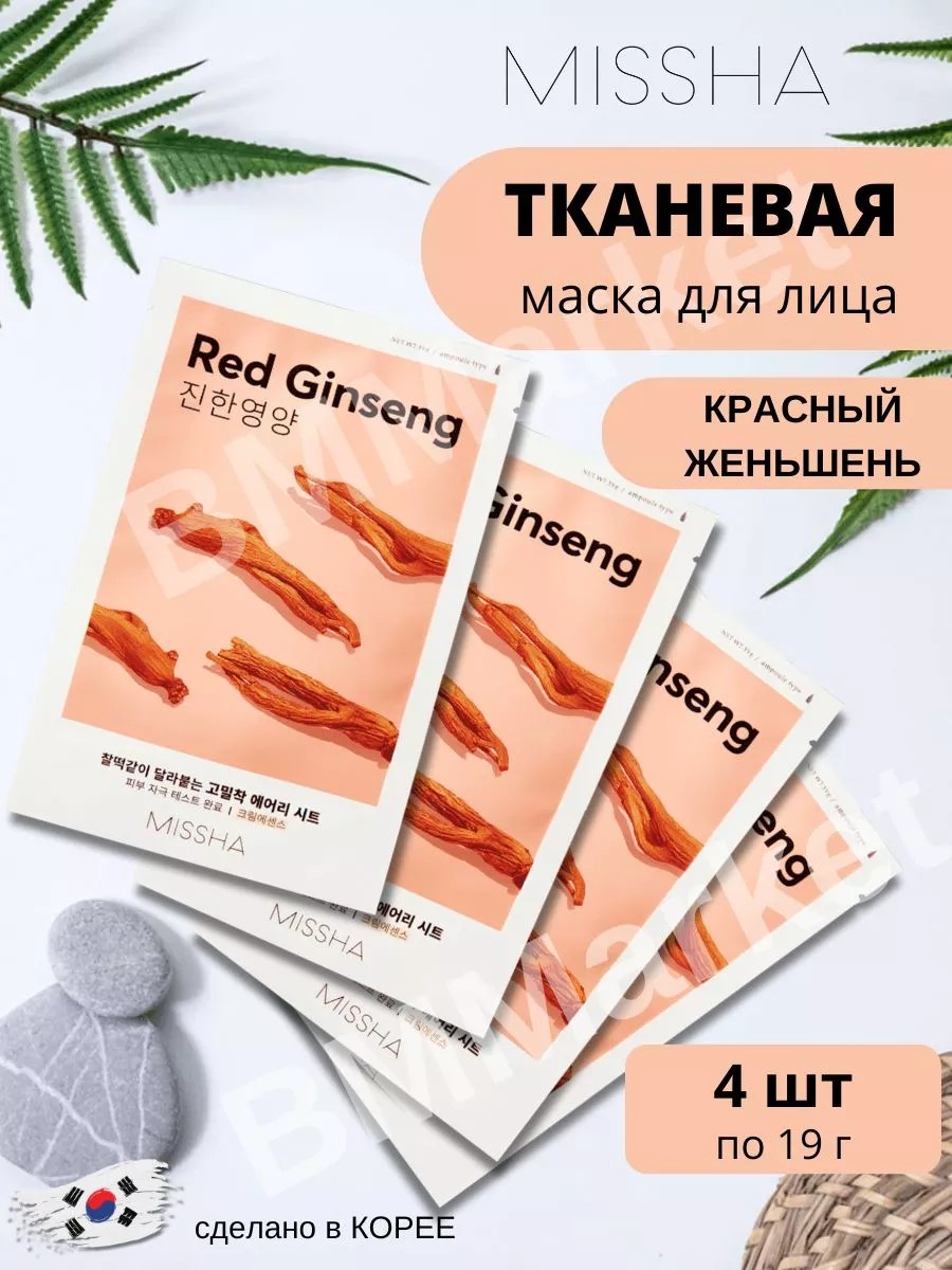 | Комплектация | Тканевая маска MISSHA Airy Fit Sheet Mask Red Ginseng - 4 шт |