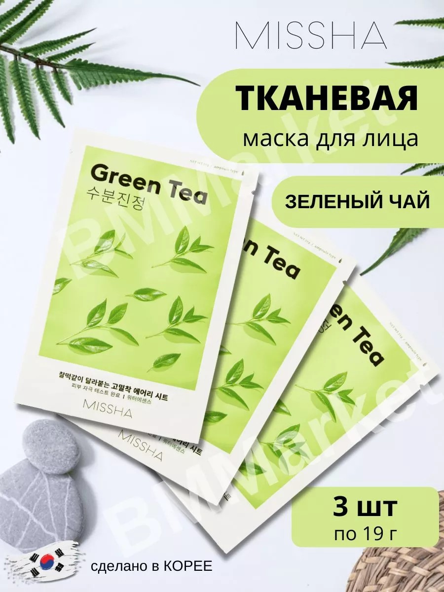 MISSHA Маска для лица тканевая успокаивающая с зеленым чаем, 3х19г