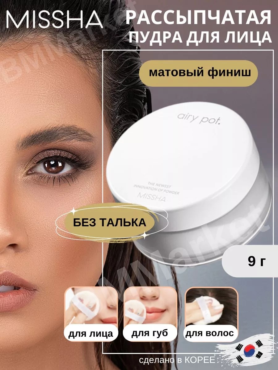 Бесцветная матирующая рассыпчатая пудра для лица MISSHA Airy Pot Powder Translucent позволяет создать на коже невесомое покрытие, эффективно устраняет жирный блеск, не забивает поры и делает их менее заметными, фиксирует макияж, значительно продлевая его стойкость, выравнивает тон, скрывает различные несовершенства и делает кожу матовой и шелковистой. Благодаря инновационным ингредиентам она обеспечивает идеальное сочетание матового покрытия и естественного сияния. Корейская пудра для лица с зеркалом и с пуховкой невероятно легкая в нанесении, равномерно распределяется по коже, не впитывает пот и кожное сало, способна адаптироваться к любому оттенку, делая кожу гладкой как шелк, обеспечивает безупречный результат в течение всего дня. Прозрачная рассыпчатая пудра — это не просто косметическое средство, это ваш верный спутник в создании идеального макияжа, который подчеркнет вашу естественную красоту и придаст уверенности в любой ситуации. Пудра для лица корея матирующая наносится кистью или пуховкой, подходит для всех типов кожи (жирная, комбинированная, нормальная). Пудру фиксирующую можно использовать для губ и для волос. Транспарентная пудра (белая) для лица миша на коже кажется прозрачной, подойдет любому тону и подтону. Создаёт матовый финиш, закрепляет макияж, матирует, делает кожу бархатистой. Не утяжеляет макияж и выглядит на коже очень натурально. Активные компоненты: Nylon-12 обеспечивает создание более легкой текстуры и матового финиша. Предотвращает жирность и излишний блеск на коже, обеспечивая более длительное устойчивое покрытие. Силика используется как абсорбент, который помогает впитывать излишки себума, делая кожу более матовой, помогает создать барьерную защиту на коже, улучшает текстуру и качество кожи. 100% Оригинальная корейская женская декоративная косметика. Способ применения: Нанесите необходимое количество средства и распределите по лицу в качестве последнего шага в процессе нанесения макияжа.