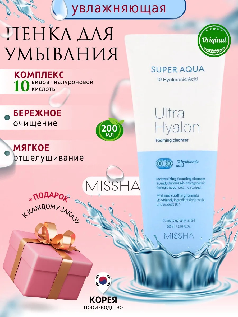 | Комплектация | Увлажняющая пенка с гиалуроновой кислотой Missha Super Aqua Ultra Hyalron Cleansing Foam 200 мл |