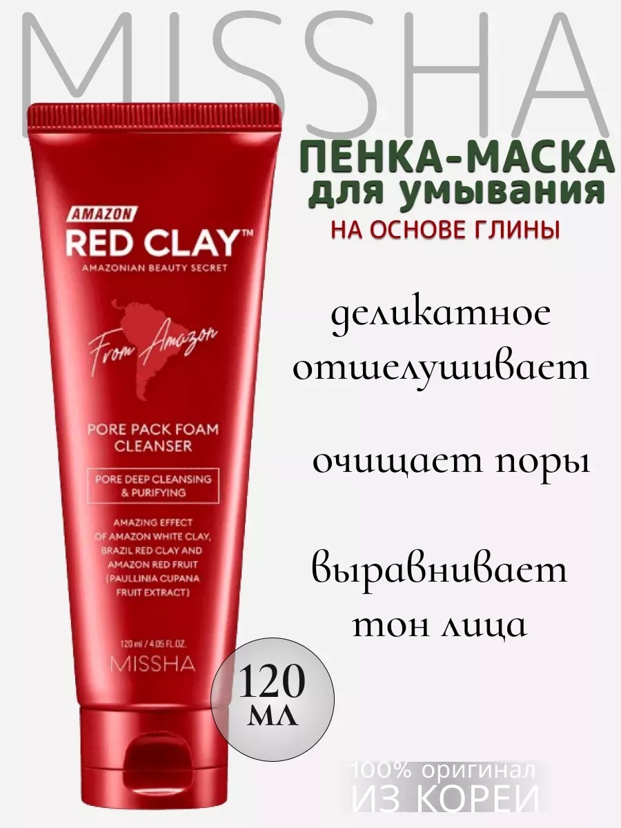 MISSHA Пенка-маска для умывания с красной глиной для лица, 120мл