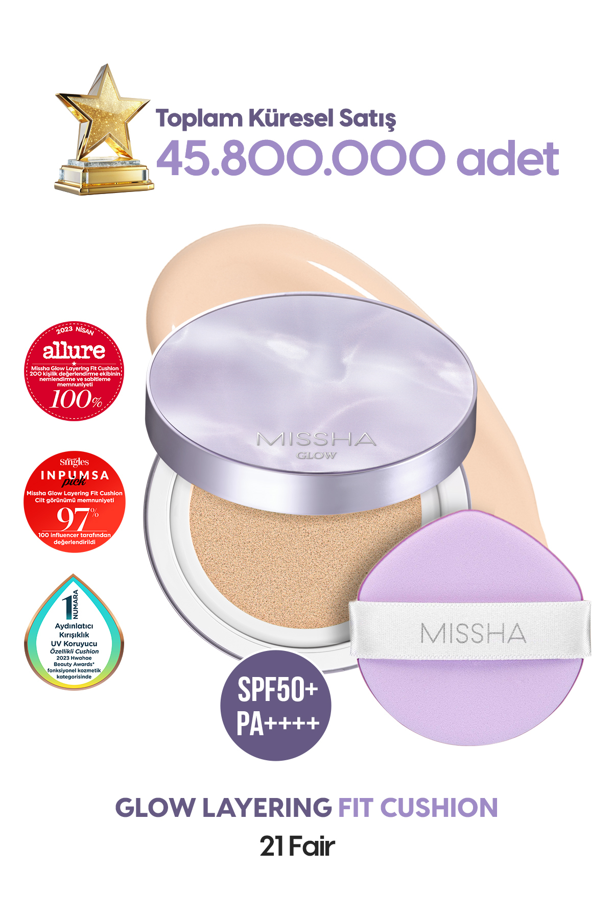 Missha Intensive Concealer Moist and Shiny Finish Cushion Glow Layering Fit Cushion Spf50 /pa No.21 Fair