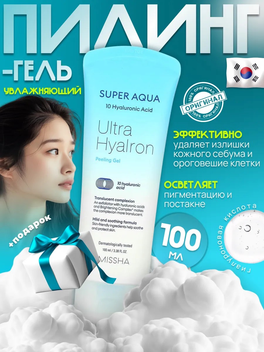 Увлажняющая пилинг-скатка Missha Super Aqua Ultra Hyalron Peeling Gel для чистой и здоровой кожи.