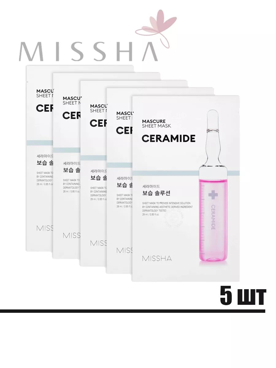 MISSHA Mascure Moisture Barrier Solution Sheet Mask (Ceramide), 5 sheets. This mask moisturizes and firms the skin. Its formula is non-irritating and non-comforting, making it suitable for even the most sensitive skin. Ceramides restore the epidermis's hydrolipid balance, combat flaking and redness, and relieve irritation and itching. The mask is made of a special material that adheres tightly to the skin, promoting deeper and faster penetration of the active ingredients into skin cells.