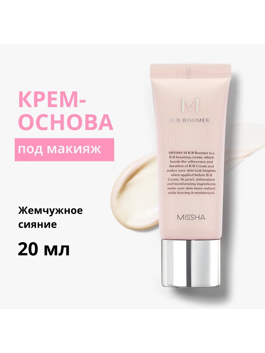 Праймер MISSHA M BB Boomer – Ваша идеальная основа под макияж для гладкой и защищённой кожи с деликатным жемчужным сиянием.