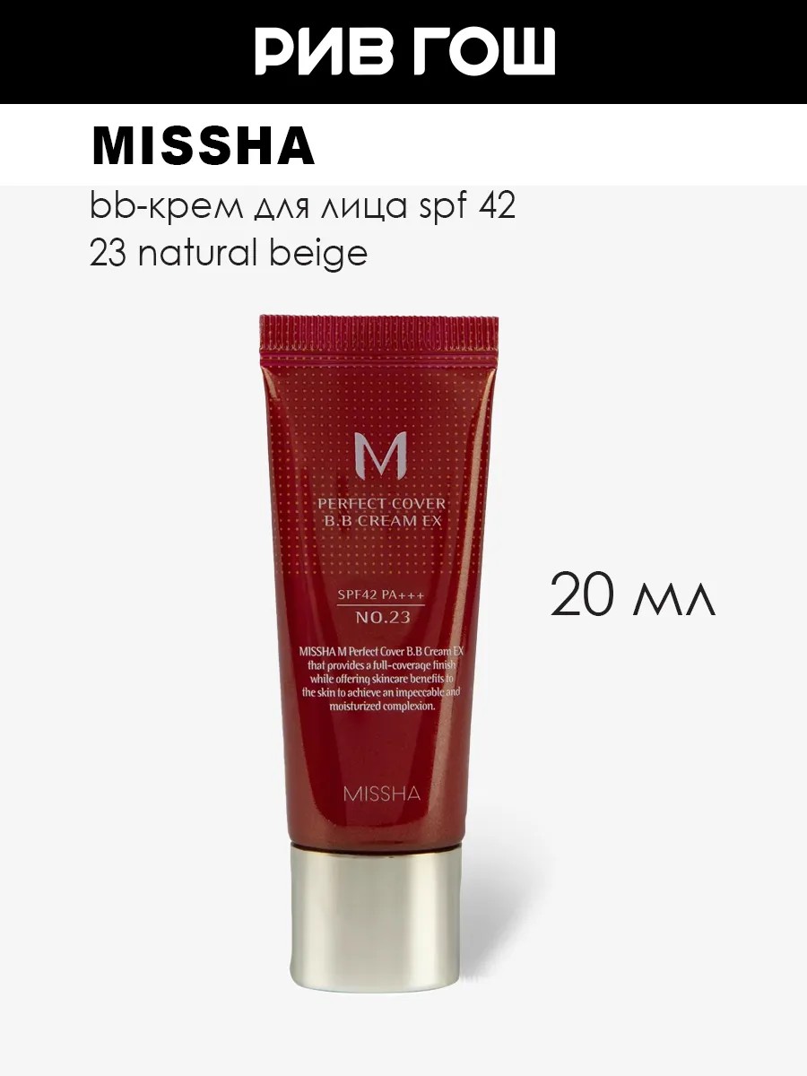 MISSHA M Perfect Cover - идеальное покрытие для вашей кожи: здоровый цвет, свежесть и сияние на весь день! BB-крем это тональный корейский крем для лица, который сочетает в себе функции увлажняющего и защищающего средства. Этот тональный крем для лица BB-крем обладает высокой эффективностью благодаря наличию множества активных ингредиентов, которые помогают улучшить текстуру кожи, сгладить неравномерность пигментации и скрыть видимые дефекты. BB-крем корея популярный корейский продукт, который набирает популярность во всем мире благодаря своим многофункциональным свойствам и легкой текстуре. Этот тональный увлажняющий крем для лица BB-крем помогает увлажнить и защитить кожу от вредных факторов окружающей среды, таких как загрязнения и ультрафиолетовое излучение. M Perfect Cover BB Cream Тональный крем EX SPF 42/PA+++, 20 мл, 23 Natural Beige. У нас Вы всегда сможете подобрать женскую и мужскую парфюмерию, декоративную косметику, а так же уходовые средства для волос, тела и лица. РИВ ГОШ вдохновляет дарить подарки каждый день.