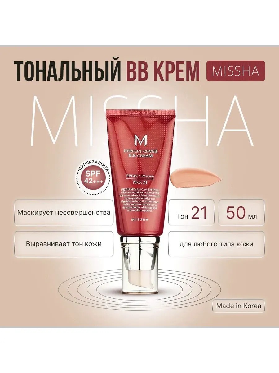 MISSHA M Perfect Cover BB Cream — универсальное средство, сочетающее макияж и уход. Подходит для кожи со светло-средним оттенком и тёплым подтоном. Крем обеспечивает естественное покрытие, скрывает покраснения и несовершенства, выравнивает тон лица и придаёт коже ухоженный вид.