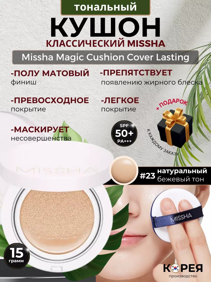 | Комплектация | Тональный кушон Missha Cushion Cover Lasting SPF50+/PA+++ 23 тон |