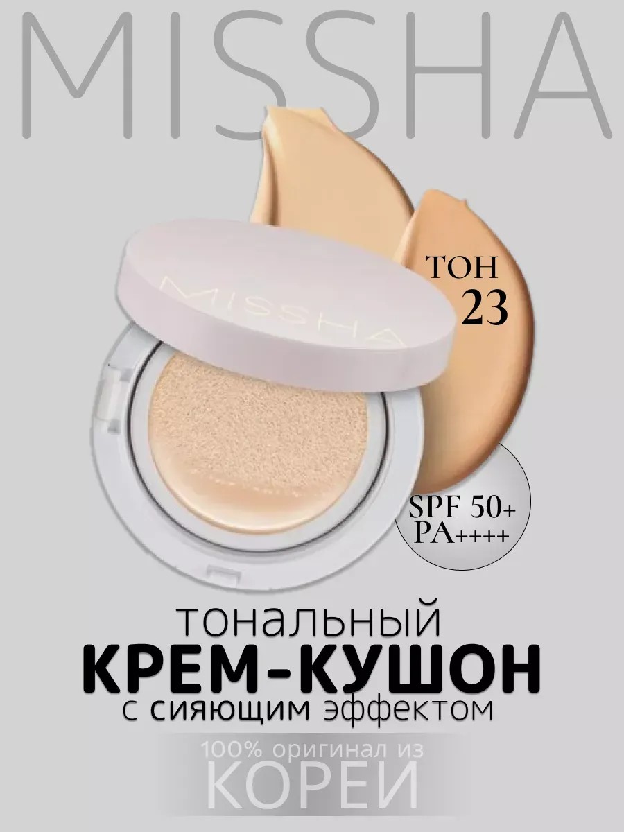 Тональный кушон MISSHA Magic Cushion Cover Lasting SPF50+/PA+++ тон 23 - замечательный продукт из Кореи, создаёт эффект увлажненного финиша с покрытием средней плотности . Этот увлажняющий солнцезащитный крем с спф 50 создан специально для Вас. Корейская косметика Missha пользуется большой популярностью благодаря натуральным ингредиентам и оригинальным решениям.Тональная основа-кушон от Missha не только маскирует недостатки, но и ухаживает за кожей, делая ее гладкой и ухоженной. Тональная основа-кушон Missha имеет широкий спектр цветов: от светлого до темного. Вы можете выбрать подходящий тон для вашей кожи - будь то светлый бежевый или натуральный белый.Ниацинамид способствует обновлению клеток кожи, а также уменьшению пигментациии следов пост-акне. Натуральные масла авокадо, оливы и подсолнечника смягчают кожу, устраняют шелушения и повышают защиту от свободных радикалов. Тональник Миша– компактное стойкое тональное средство, которое всегда с собой. Солнцезащитный тональный bbкрем отлично подходит для женщин. Сочетание SPF 50 и консилера в одном продукте обеспечивает высокую степень защиты от вредных солнечных лучей. Кушон бб-тоналка имеет в комплекте спонж, который обеспечивает равномерное нанесение. Не создаёт ощущения маски, не закупоривает поры и не забивается в складки кожи. Может использоваться в качестве консилера.Подходит для любого типа кожи, включая очень сухую кожу и чувствительную область вокруг глаз. Экстракты листьев зелёного чая, лотоса и гидролат шалфея интенсивно увлажняют кожу, делая её мягкой и ровной, разглаживая мелкие морщинки и стимулируя обновление клеток. Не сушит кожу и не подчёркивает шелушение. Пудра имеет среднюю кроющую способность и легкую текстуру, полуматовый финиш и легкое покрытие создают естественный макияж, эффективно перекрывает тёмные круги под глазами, покраснения, пигментные пятна и следы от прыщей. Убедитесь сами в высоком качестве и эффективности тональной основы-кушон Миша из Кореи - выбор профессионалов!