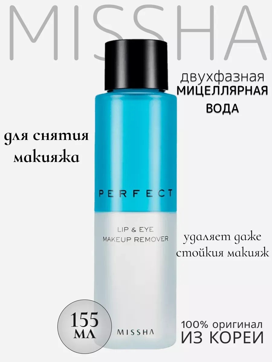 Двухфазное средство от Миша Perfect Lip & Eye Make-Up Remover для снятия макияжа отлично подходит для ухода за губами, бровями и глазами. Мицеллярная вода эффективно удаляет даже водостойкий макияж, и, благодаря двухфазной формуле с экстрактом василька, защищает от повреждения ресницы. Оно идеально и бережно очищает кожу вокруг глаз и не оставляет ощущения жирности и липкости. Средство для снятия макияжа удаляет водостойкий макияж и одновременно с этим увлажняет кожу, обеспечивает легкое и быстрое очищение кожи. Это корейское двухфазное средство для снятия макияжа от missha – настоящее чудо! Средство для снятия макияжа с губ и глаз можно применять даже для очень чувствительной кожи, оно не сушит, не вызывает сухости и раздражения. Водно-масляная формула умывашки содержит 55% увлажняющих ингредиентов. Экстракт огуречника используется в качестве компонента, укрепляющего эпидермальный барьер, улучшает влагоудерживающую способность кожи, повышает ее эластичность и защитные свойства. Умывалка мягко и без лишних трений удаляет ежедневный и интенсивный мейкап, включая макияж глаз и губ. На основе морской воды с большим содержанием увлажняющих компонентов и масла в идеальной пропорции 6:4, что обеспечивает легкое и быстрое очищение кожи. Подходит для самых чувствительных глаз. Смывка для демакияжасодержит экстракты василька, маргаритки, огуречника, которые заботятся о чувствительной коже глаз и губ. Перед применением встряхните флакон. Смочите очищающей жидкостью ватный диск и аккуратно очистите кожу. Для снятия макияжа с глаз приложите смоченный ватный диск к закрытым глазам на несколько секунд. Используйте ремувер на первом этапе очищения. Для удаления остатков косметики и макияжа используйте очищающую пенку для умывания. Наслаждайтесь заботой о себе с этим корейским продуктом из Кореи, который не только эффективно удаляет макияж, но и бережно ухаживает за вашей кожей.