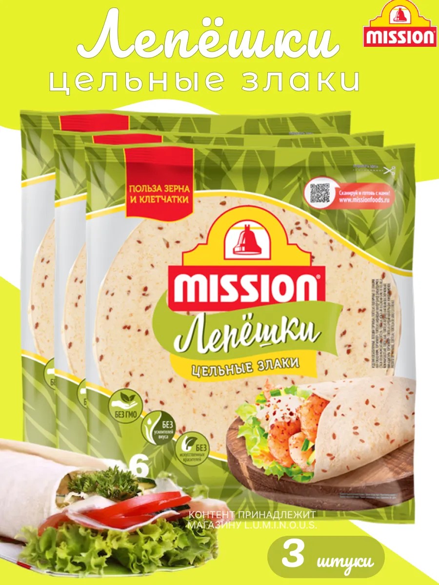 Mission Лепешки Тортильи пшеничные со злаками, 250 г, 3 шт. Пшеничные тортильи производятся из пшеничной муки высшего сорта, но содержание натуральных злаков делают их продуктами здорового питания. Используйте для начинки тортилий правильные продукты, такие как овощи, грибы и др. и у вас под рукой всегда будет недорогое, сытное и вкусное блюдо, а главное низкокалорийное. Может содержать следовые количества молочных продуктов.
