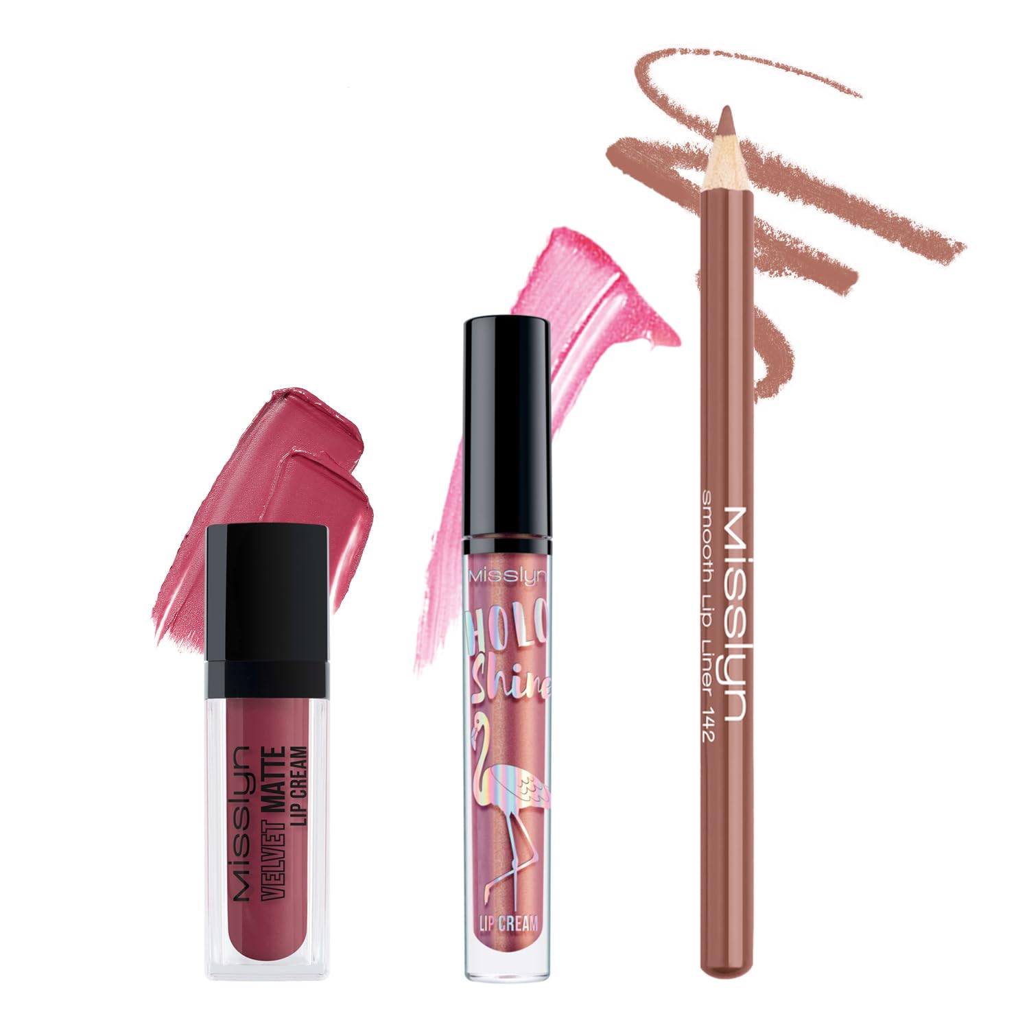 Misslyn High-Shine and Matte Lip Gloss, Plumping and Moisturizing for Full Lips, Long-Lasting Precision Pencil – Set of 2 Lip Glosses and Pencil Misslyn was born in Italy and grew strong in Germany. Misslyn's commitment to quality and innovation has made it a beloved brand among beauty enthusiasts worldwide since 1957. With our high-quality ingredients and innovative formulas developed in Europe, Misslyn products enhance natural beauty and boost self-confidence. A charming girl who loves bright looks and always strives to add a touch of flair to her style will certainly be delighted with the gorgeous Misslyn Holo Shine Lip Cream. Thanks to its pleasantly creamy texture, it glides evenly onto the skin, filling in every crease and visually smoothing out imperfections. The Velvet Matte Lip Cream leaves your lips with an attractive matte finish. In seconds, its smooth, creamy texture will gently envelop your lips in a silky, weightless finish for an intense matte look. The Misslyn Smooth Lip Liner is an intensely pigmented lip liner. The smooth lip pencil allows for effortless application and impresses with intense, even color. It improves lipstick wear and prevents bleeding. The set is available in 3 different sets, each containing a lip gloss, a lipstick, and a lip liner. The formula is free of harsh mineral oils that can irritate the sensitive skin of the lips. SAFETY WARNING For external use only. Keep out of reach of children. Avoid contact with eyes. Discontinue use if signs of irritation or rash occur. Store in a cool, dry place.MISSLYN - Misslyn was born in Italy and grew strong in Germany. Misslyn's commitment to quality and innovation has made it a beloved brand among beauty enthusiasts worldwide since 1957. With our high-quality ingredients and innovative European formulas, Misslyn products enhance natural beauty and boost confidence. 3 sets available: The set is available in 3 different sets, each containing a lip gloss, a lipstick, and a lip liner. The formula does not contain harsh mineral oils that are harmful to the sensitive skin of the lips. SMOOTH LIP LINER - The Misslyn Smooth Lip Liner is an intensely pigmented lip liner. The smooth lip liner allows for effortless application and impresses with intense, even color. It improves the wear time and prevents lipstick from bleeding. Velvet Matte Lip Cream - The Velvet Matte Lip Cream lipstick leaves your lips with an attractive matte finish. In seconds, its smooth, creamy texture will gently envelop your lips in a silky, weightless finish for an intense matte look. HOLO SHINE LIP CREAM - A charming girl who loves bright, luminous looks and always strives to add a touch of flair to her style will certainly be delighted by the magnificent Misslyn Holo Shine Lip Cream gloss. Thanks to its pleasantly creamy texture, it spreads evenly on the skin, filling in every crease and visually smoothing out imperfections.Misslyn Rouge à lèvres brillant à lèvres haute brillance hydratant et volumisant pour lèvres charnues, 3 crayons à longue durée de vie, crayon de précision à teinte légère, lot de brillant à lèvresDESCRIPTION DU PRODUIT DESCRIPTION DU PRODUIT Misslyn Gloss à lèvres à haute brillance et gloss mat, volumateurs et hydratants pour lèvres charnues, crayon de précision longue durée – Lot de 2 gloss à lèvres et crayon Misslyn est née en Italie et a grandi fort en Allemagne. L'engagement de Misslyn pour la qualité et l'innovation en fait une marque appréciée par les amateurs de beauté du monde entier depuis 1957. Avec nos ingrédients de haute qualité et des formules innovantes en Europe, les produits Misslyn améliorent la beauté naturelle et augmentent la confiance en soi. Une fille charmante qui adore les images lumineuses et s'efforce toujours de donner un peu de goût à son look, elle sera certainement ravi du magnifique gloss de Misslyn Holo Shine Lip Cream. Grâce à sa texture crémeuse agréable, elle se répartit uniformément sur la peau, remplissant chaque pli et lissant visuellement le micro-relief. Le rouge à lèvres Velvet Matte Lip Cream laisse sur vos lèvres une finition mate attrayante. En quelques secondes, sa texture lisse et crémeuse enveloppera doucement vos lèvres dans un fini soyeux et sans poids pour un fini mat intense. Le Misslyn Smooth Lip Liner est un crayon pour le contour des lèvres à libération de couleur intense. Le crayon à lèvres lisse permet une application sans effort et impressionne avec une couleur uniforme intense. Améliore la durée de vie et empêche le rouge à lèvres de saigner. Le lot est disponible en 3 ensembles différents et chaque ensemble est composé d'un gloss à lèvres, d'un rouge à lèvres et d'un crayon. La formule ne contient pas d'huiles minérales agressives et nocives pour la peau sensible des lèvres. AVERTISSEMENT DE SÉCURITÉ Usage extérieur uniquement. Tenir hors de portée des enfants. Évitez tout contact avec les yeux. Arrêter l'utilisation si des signes d'irritation ou d'éruptions cutanées se produisent. Conserver dans un endroit frais et sec.MISSLYN - Misslyn est né en Italie et a grandi fort en Allemagne. L'engagement de Misslyn pour la qualité et l'innovation en fait une marque appréciée par les amateurs de beauté du monde entier depuis 1957. Avec nos ingrédients de haute qualité et des formules innovantes en Europe, les produits Misslyn améliorent la beauté naturelle et augmentent la confiance en soi. 3 ensembles disponibles : le lot est disponible en 3 ensembles différents et chaque lot est composé d'un gloss à lèvres, d'un rouge à lèvres et d'un crayon. La formule ne contient pas d'huiles minérales agressives et nocives pour la peau sensible des lèvres. SMOOTH LIP LINER - Le Misslyn Smooth Lip Liner est un crayon pour le contour des lèvres à libération de couleur intense. Le crayon à lèvres lisse permet une application sans effort et impressionne avec une couleur uniforme intense. Amélio