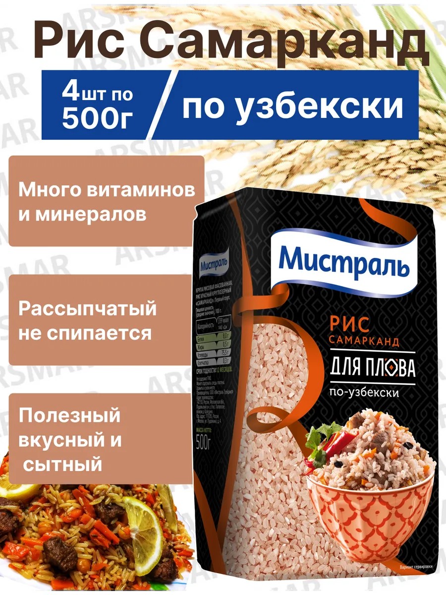 МИСТРАЛЬ Рис для плова узбекский Самарканд 4*500г