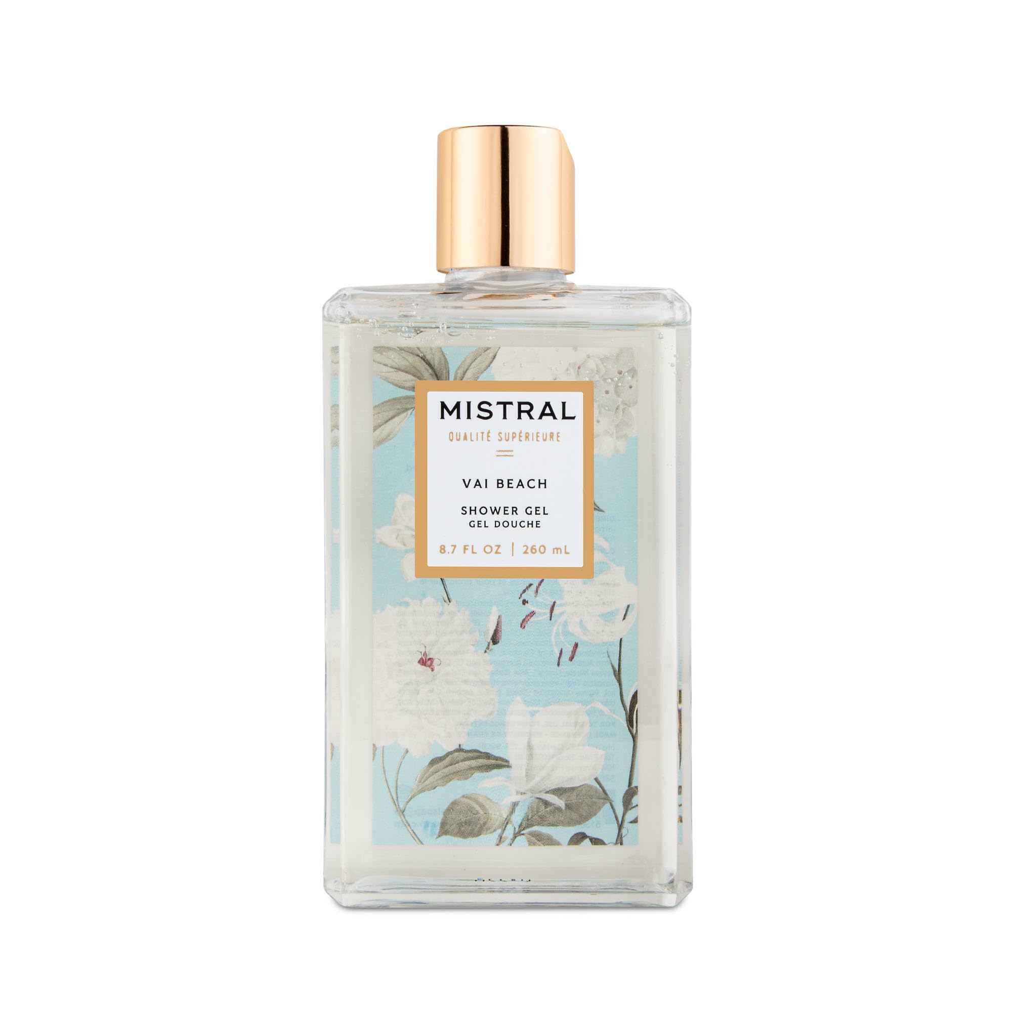 Embrace the Energy of Coastal Escape Mistral Vai Beach Shower Gel for Women captures the sun-drenched vibes of a tropical shoreline. This natural shower gel refreshes and revitalizes with every use, offering an uplifting splash of island-inspired luxury body care. A Refreshing, Tropical Scent for the Body Top notes of lemon, tangerine, bergamot, and orange blossom flow into a heart of jasmine absolute, frangipani, heliotrope, and coconut. The base blends ylang ylang, sandalwood, and osmanthus—creating a sunny, coastal escape in every shower. Premium Quality Ethical Formulation Made with organic chamomile water, aloe vera, and sweet almond oil, this moisturizing body wash gently cleanses while locking in hydration. Free from parabens and phthalates and tested on women, not animals, it reflects our commitment to clean beauty. The elegant bottle adds a touch of French refinement to your shower routine, making this a scented shower gel worth indulging in. SCENT NOTES Top: Lemon, Bergamot, Tangerine, Orange Blossom Middle: Frangipani, Jasmine Abs, Heliotrope, Coconut Base: Ylang Ylang, Osmanthus, Sandalwood, Cedarwood FEATURES Free from parabens and phthalates Tested on women, not animals Gently cleanses without drying Clean fragrance long-lasting scent Vegan, sulfate-free, pH-balanced formulaCLEAN, VEGAN MADE IN FRANCE: Formulated without parabens, phthalates, or sulfates, this natural shower gel is vegan, cruelty-free, and made in France using high-quality botanical ingredients. Pairs beautifully with our Silk Body Lotion for a complete routine. TROPICAL FLORAL FRAGRANCE: Vai Beach bath wash blends citrus oils and orange blossom with creamy coconut, jasmine absolute, and heliotrope. The base of sandalwood and osmanthus brings a luminous, sensual depth, like summer on the shores of Crete. BALANCED, NON-DRYING FORMULA: Enjoy a pH-balanced body wash that won't strip your skin. This gentle and hydrating body wash is suitable for daily use and leaves no residue—just refreshed, hydrated skin with a light, lingering citrus floral scent. NATURAL INGREDIENTS BOTANICAL OILS: Crafted with organic aloe vera, organic chamomile water, and sweet almond oil, this moisturizing body wash nourishes and conditions your skin. Its plant-based formula is ideal for maintaining a healthy, glowing complexion. LUXURIOUS FOAMING CLEANSER: This luxury shower gel body wash for women delivers a rich, foamy lather that gently cleanses and refreshes. Infused with the bright, radiant scent of Vai Beach, it leaves your skin soft, clean, and delicately perfumed with every wash.