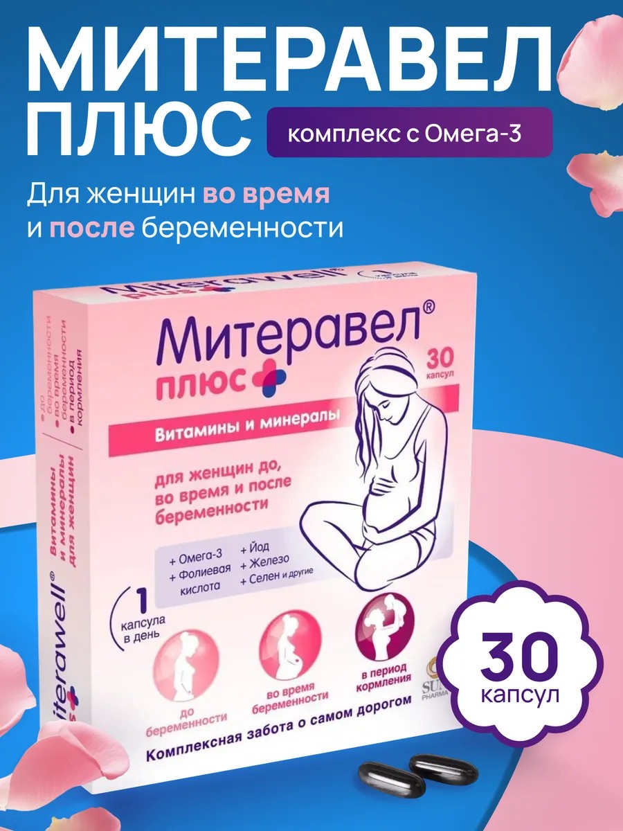 В состав Митеравел Плюс входят витамины и минералы для комплексной заботы о самом дорогом - здоровье будущего малыша и его мамы.