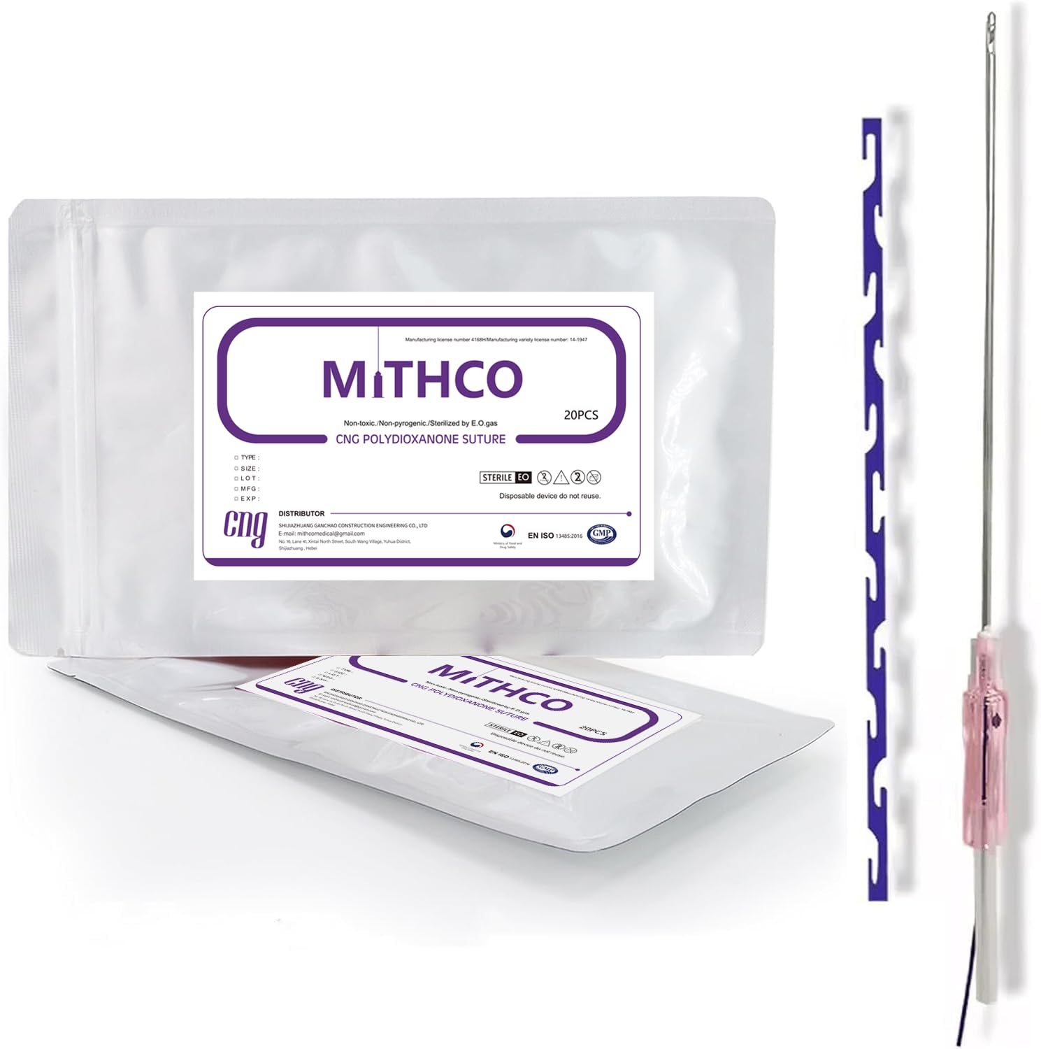 PDO threads typically take 6 months to become fully biodegradable, and results generally last 12 to 24 months depending on the patient's skin condition. PDO Cog Molding offers excellent tensile strength to maximize collagen stimulation, reduce fine lines and wrinkles, and strongly tighten sagging skin for long-lasting results. PDO Cog Molding is used to firm the soft tissues of loose skin, creating a strong traction effect and effectively fixing facial tissues in all directions. Biocompatible and absorbable. Disposable no need for further sterilization not reusable. Please use the product under the guidance of qualified personnel. PDO Cog Molding Threads: 20 pieces 1 sealed pack.