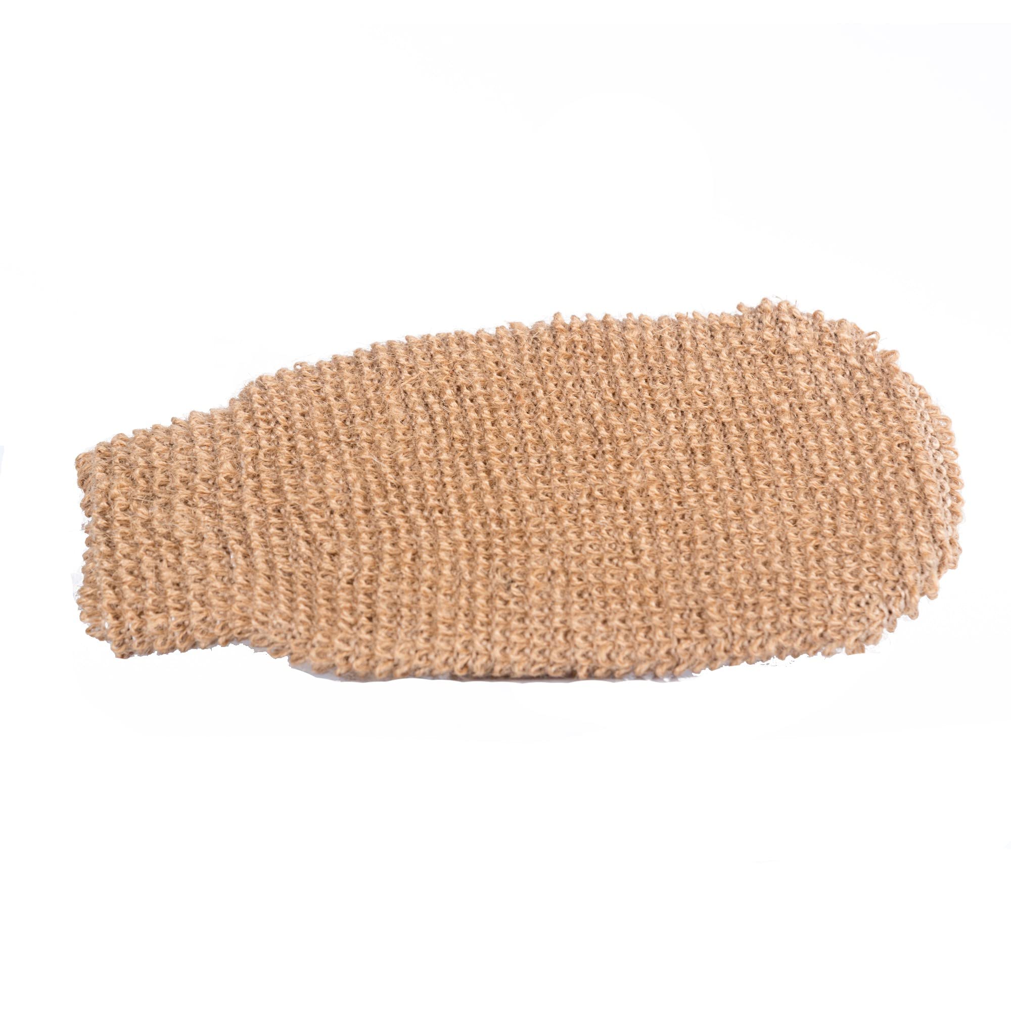 The decoration is not included.Use some soap in a circular movements.Suitable for daily use, the skin does not attack.Dimensions: approx. 22x10cm material: hemp linen color: brown.Hemp massage shoe for body peeling in unit size.