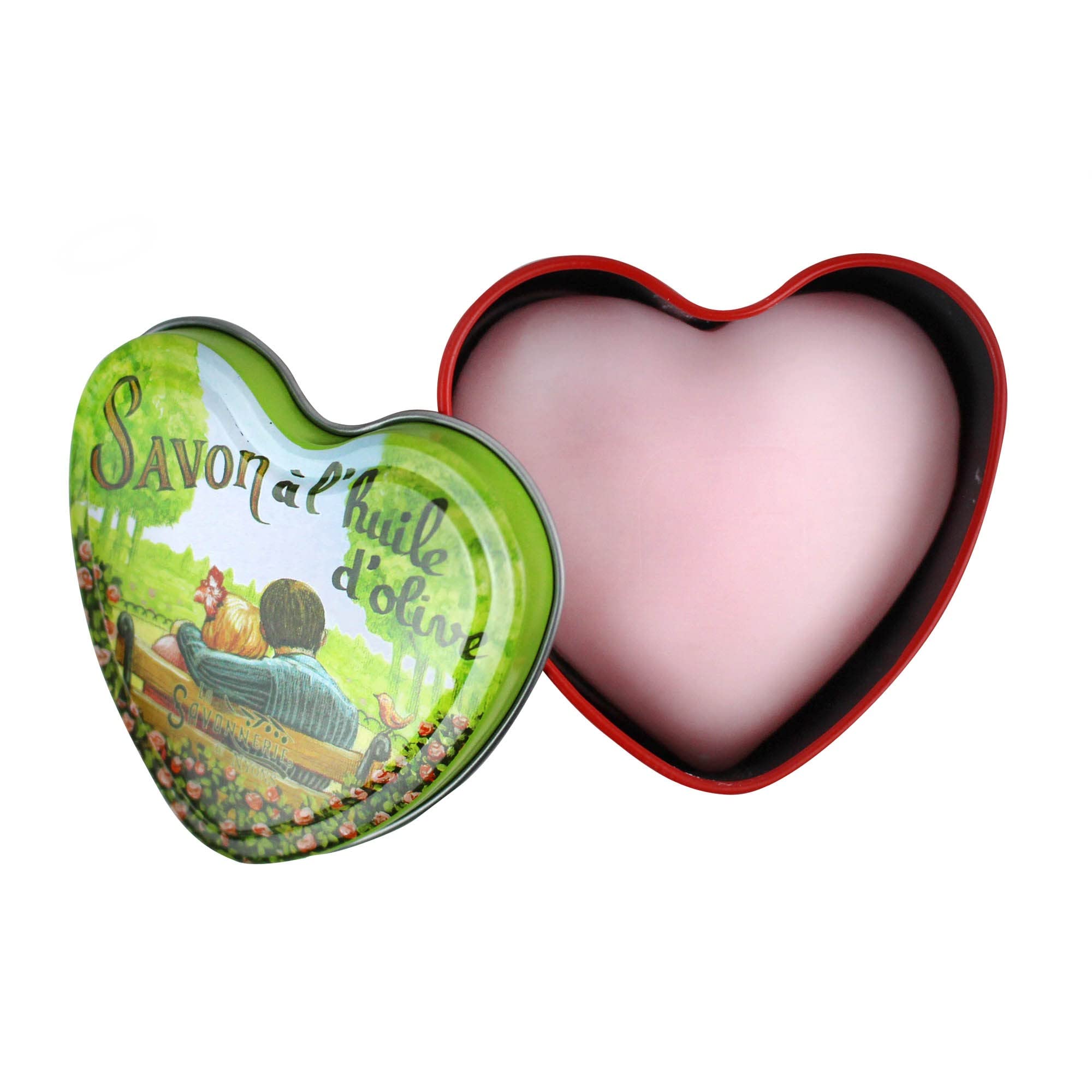 These natural soaps from the French province of Nyons are made with the key ingredients of organic shea butter and regional olive oil. Organic shea butter and olive oil have particularly softening and protective properties to care for your skin. The soap is a natural product and therefore suitable for all skin types. The heart-shaped natural soap weighs approximately 100g and measures approximately 8 x 2.5 x 7 cm. The soap has been infused with rose fragrance, giving it a beautiful scent that fills the bathroom as soon as the metal tin is opened. Enjoy a moment of well-being and let yourself be enveloped by the delicate Provençal rose scent. The decorative metal tins in which the rose soaps are presented are typical of the Nyons region of France and are true collector's items. The designs on the tins are created by the artist Luc Mazan. Not only can you use the metal tin to store the soap, but it's also reusable. For example, you can store your jewelry or other small items in the decorative soap tin. The heart-shaped soap in its heart-shaped metal tin is also ideal as a Valentine's Day gift. Directions for use: Apply to wet skin, lather, then rinse thoroughly with water. Avoid contact with eyes rinse thoroughly with clean water. Decoration not included.